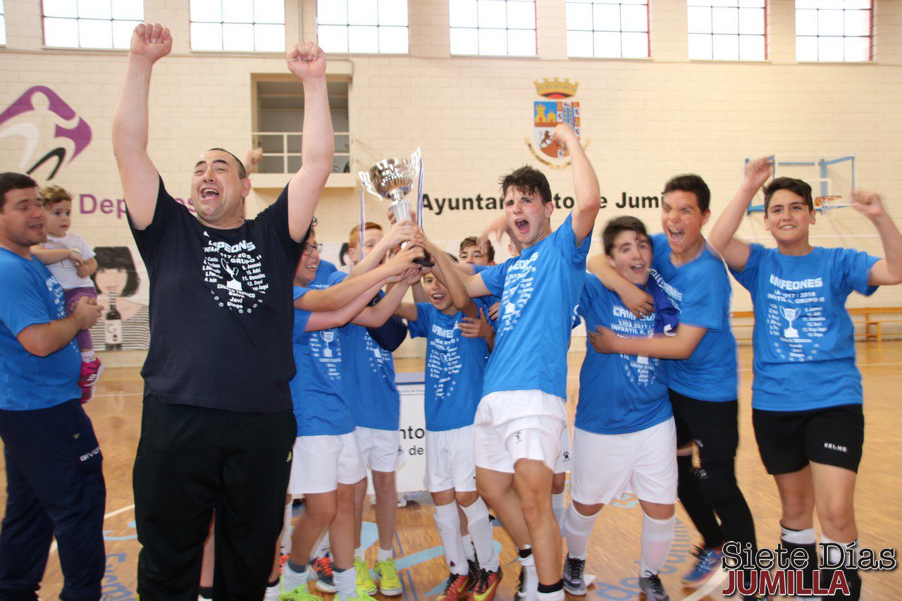 El equipo infantil de la Escuela de Fútbol Sala Jumilla ya es campeón de liga, tras la victoria en esta última jornada. Los blanquiazules solo necesitaban un punto para apuntarse el título, pero quisieron regalar una victoria a la afición en su despedida del curso en casa, y golearon al colista del grupo 2 de Liga Autonómica, el CD Archivel FS, por 11-3.