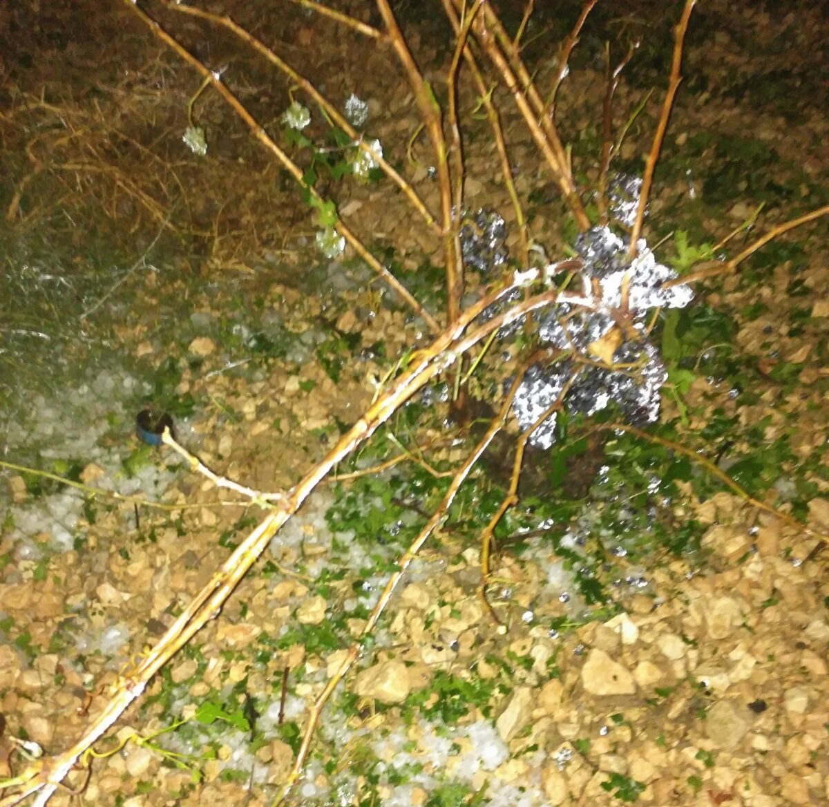 En este momento se desconocen los daños causados que serán analizados con mayor precisión a primera hora de la mañana por las organizaciones agrarias, pero ya se sabe que hubo destrozos en viñedos por la zona de El Ardal, la Jimena y la Fuente del Pino.