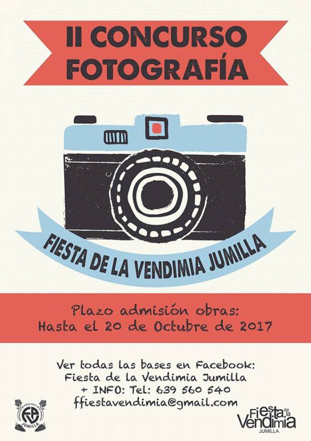 Entre otras cosas, indican que las fotografías deberán contemplar actos, concursos o actividades que organice la Federación de Peñas de la Fiesta de la Vendimia de Jumilla y el entorno de las mismas, por lo tanto, el periodo de participación en esta segunda edición del concurso dará comienzo el próximo 11 de junio, momento en el que tendrá lugar la presentación de los Vendimiadores Mayores e Infantiles y finalizará el domingo 3 de septiembre con la Romería al Niño de las Uvas, teniendo como parte principal los actos del 11 al 20 de agosto, fecha donde se celebrará la 46º Fiesta de la Vendimia de Jumilla.