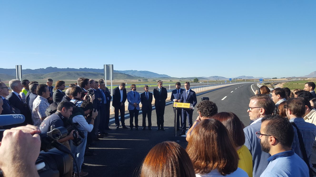 Esta mañana se ha inaugurado el tramo de la autovía A-33 que une Jumilla y Yecla. En el acto, entre otras muchas autoridades locales, comarcales y regionales, ha estado presente el ministro de Fomento Iñigo de la Serna quien ha asegurado que “no estamos ante una infraestructura cualquiera, sino que es una de las de mayor envergadura de las que tenemos en marcha, con una actuación que forma parte de un corredor, cuya inversión global es de 540 millones de euros”. Pincha aquí y escucha un fragmento de la intervención del ministro de Fomento Iñigo de la Serna: