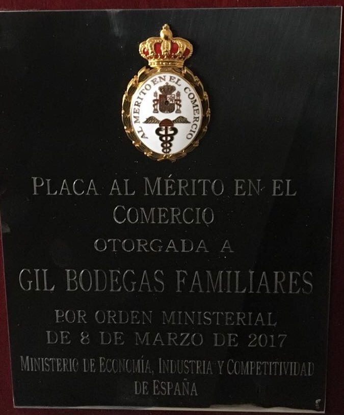 La secretaria de Estado de Comercio, María Luisa Poncela, entregó la Placa al Mérito en el Comercio a Juan Gil Bodegas Familiares, que fue recogida por Juan Gil Vera en un acto que tuvo lugar en el Ministerio de Economía, Industria y Competitividad, y en el que estuvieron presentes los directores generales y representantes políticos de este área ministerial.