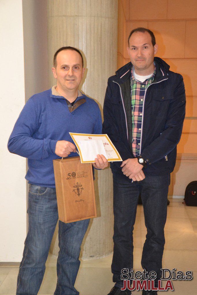 Hasta cuatro premios repartió la hermandad jumillana, comenzando por un accésit, dotado con cincuenta euros, que entregó la responsable del Aula de Cultura de CajaMurcia, María Dolores Pérez, a José Luis Miñano por su obra “Crucificado”.
