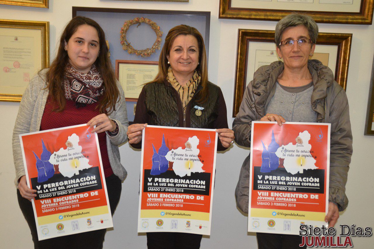 Previa a esta cita se llevará a cabo la V Peregrinación de la Luz Joven Cofrade, que actualmente permanece en la sede del anterior organizador del encuentro, la Cofradía de la Caridad de Murcia. La peregrinación comenzará el 27 de enero a las 8:30 horas desde la Iglesia de Santa Catalina de Murcia. La luz pasará por varias localidades de la Región, en las que los jóvenes se unirán a su compañía hasta llegar a Jumilla, más concretamente al Convento de Santa Ana, dónde, a las 12:00 aproximadamente, la cofradía espera haya una multitud de jóvenes esperándola. Desde allí se producirá la peregrinación a pie hasta la sede de la cofradía organizadora, la ermita de San Agustín, donde se entregará la luz a los pies de la patrona y un ágape pondrá fin a la jornada.