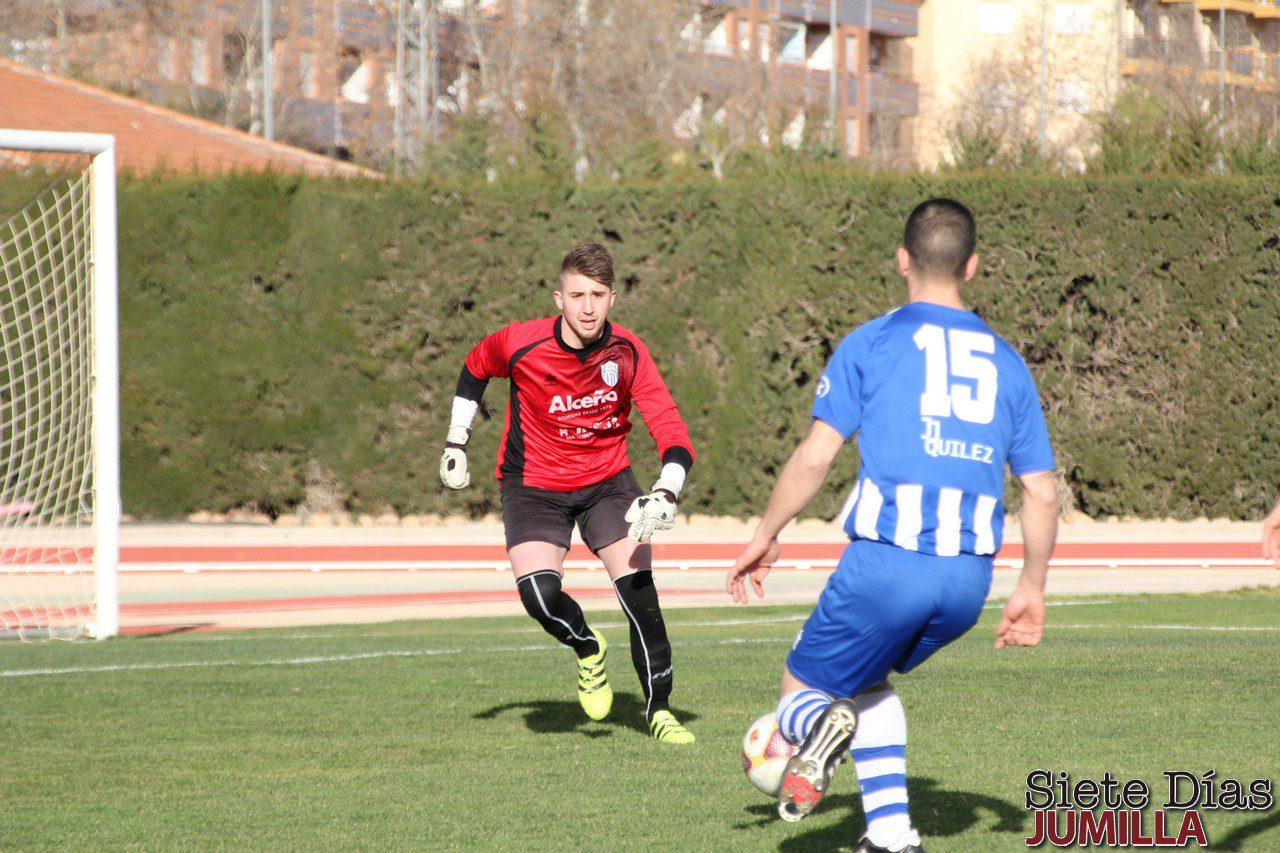 Todo salió de cara. Si normalmente es el Jumilla CD el que suele encajar gol con el tiempo casi cumplido, en esta ocasión se inviertieron las tornas y Juan López aprovechó un error del guardameta rival para adelantar a los suyos a un minuto del descanso, asestando un golpe psicológico a su rival y encarando un partido que no se decidió hasta los últimos coletazos del segundo acto.
