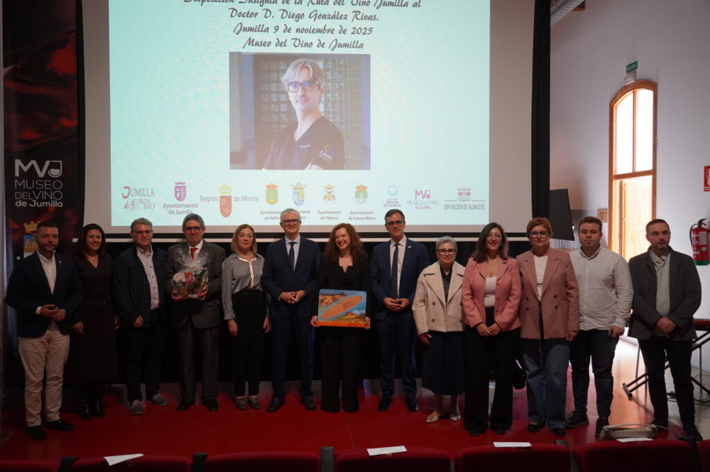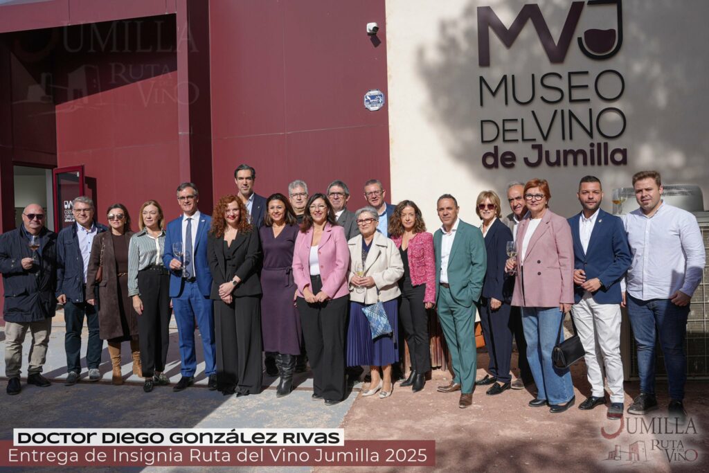 La Asociación Ruta del Vino de Jumilla ha celebrado el acto de entrega de su máxima distinción honorífica: la Insignia de Oro, un reconocimiento que en esta edición ha recaído en el prestigioso cirujano torácico Diego González Rivas, considerado un referente internacional por sus innovadoras técnicas quirúrgicas y su compromiso humanitario.