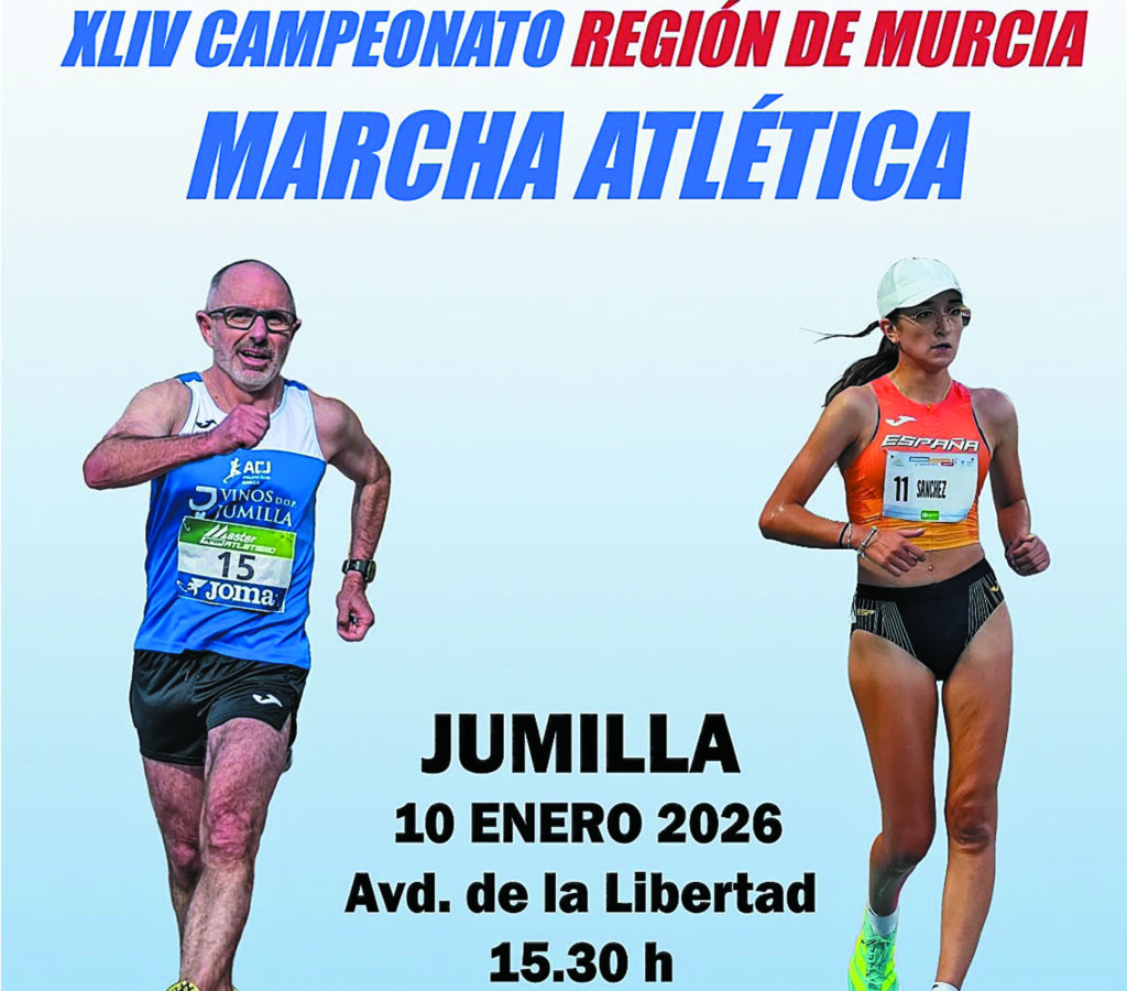 El Athletic Club Vinos DOP Jumilla iniciará el año 2026 con la organización del Campeonato Regional de Marcha en Ruta, junto a la Federación de Atletismo y con la colaboración de la Concejalía de Deportes.