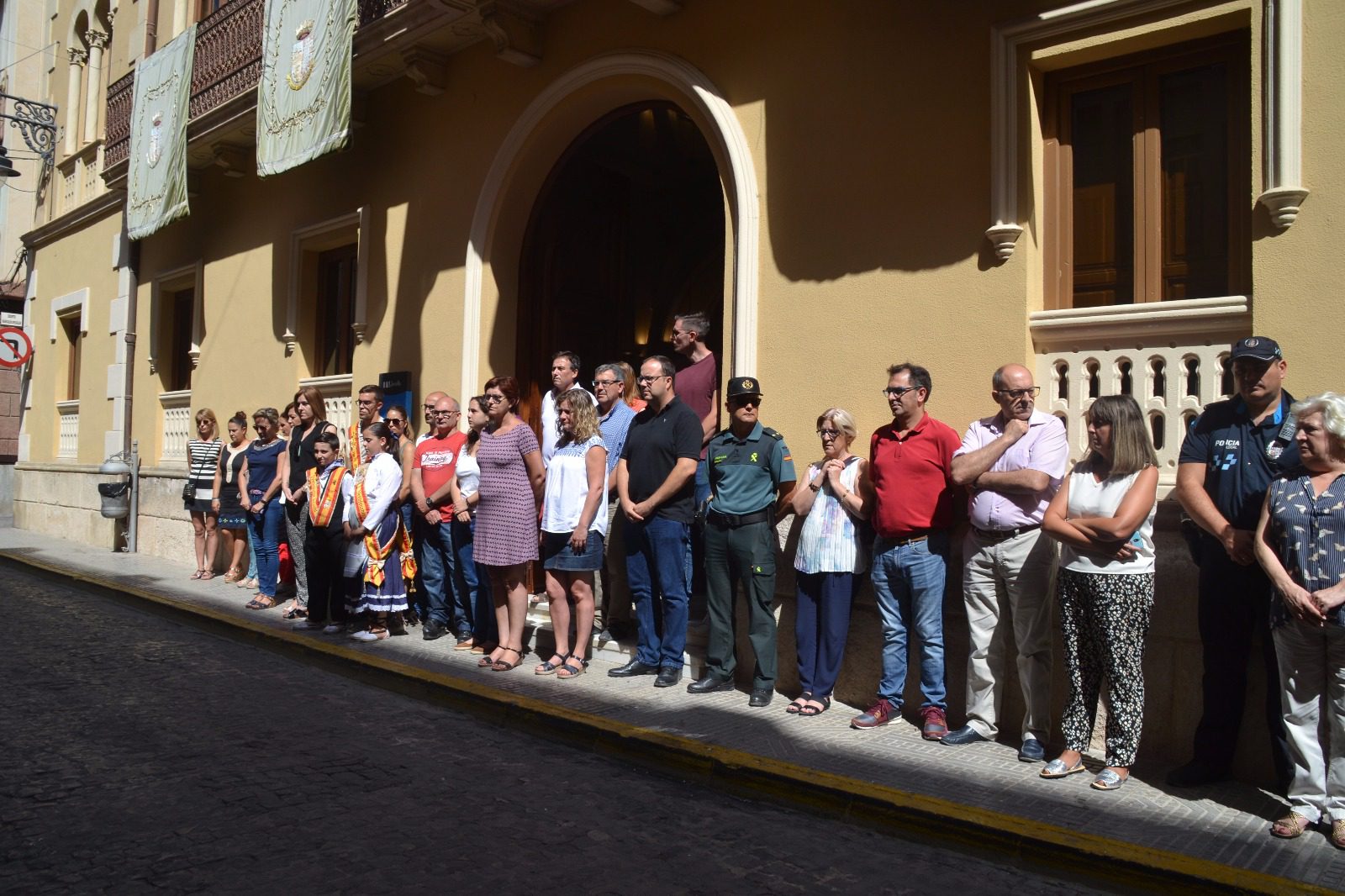 A pesar de encontrarnos en plena celebración de las fiestas patronales, Jumilla no es ajena a la triste actualidad nacional. Por eso este mediodía se ha sumado al dolor por las víctimas del atentado ocurrido ayer en Barcelona. Se han llevado a cabo cinco minutos de silencio a las doce del mediodía en la puerta del Ayuntamiento.