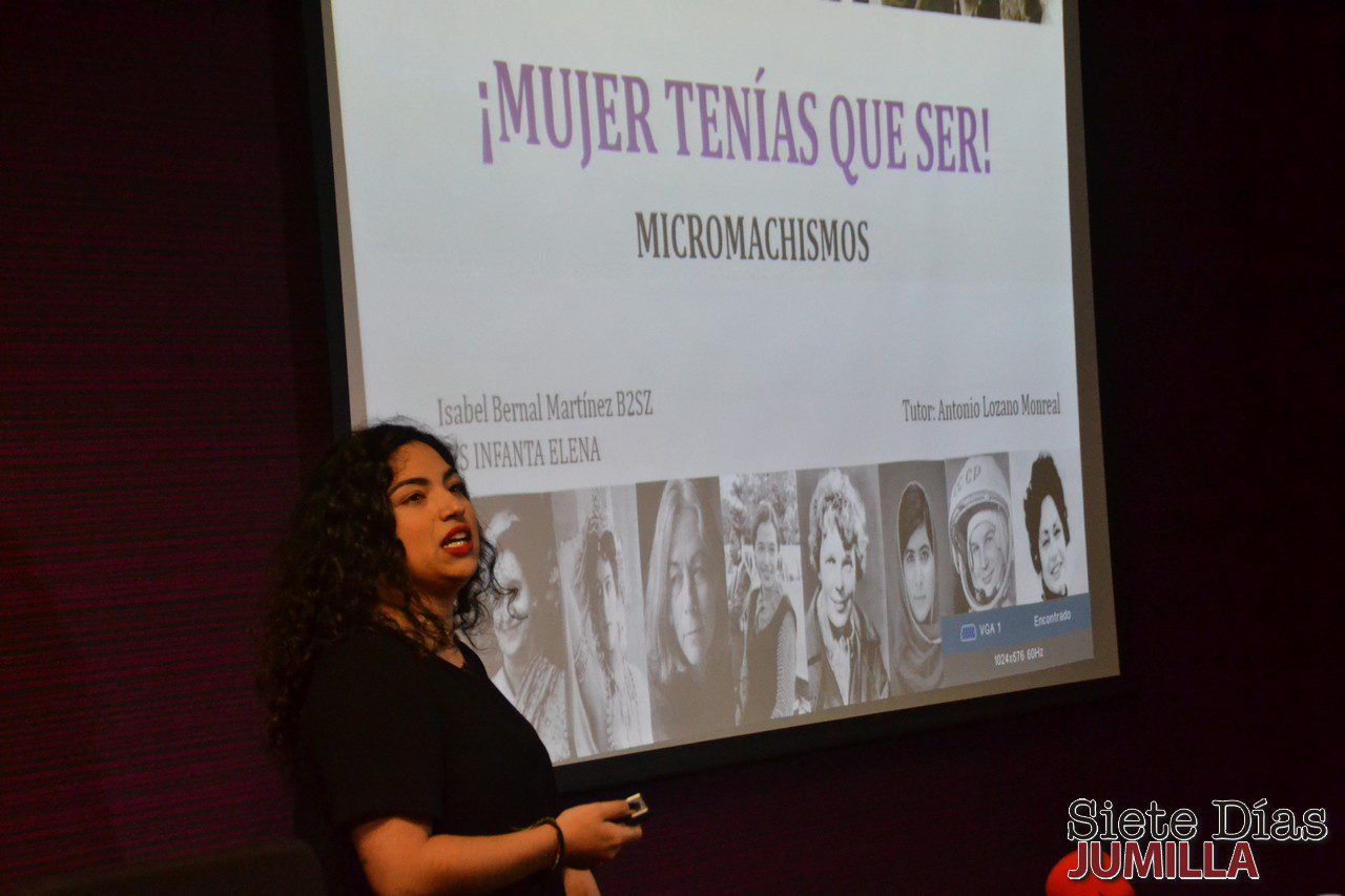 Isabel Bernal en la exposición de su trabajo acerca de los micromachismos, los calificó como “machismos sutiles” pero no por eso menos importantes, advirtiendo que se encuentran en todos los espacios sociales, en la educación, en el ámbito laboral, familiar o de ocio reteniendo así la evolución hacia la igualdad real.