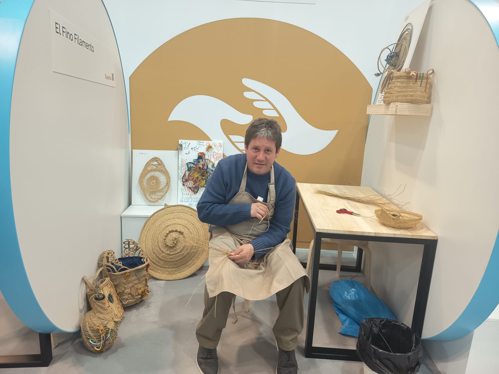 También el domingo, el artesano espartero Jesús Ortega ofreció, en el espacio Artesanía de la Región de Murcia, una demostración de esparto.