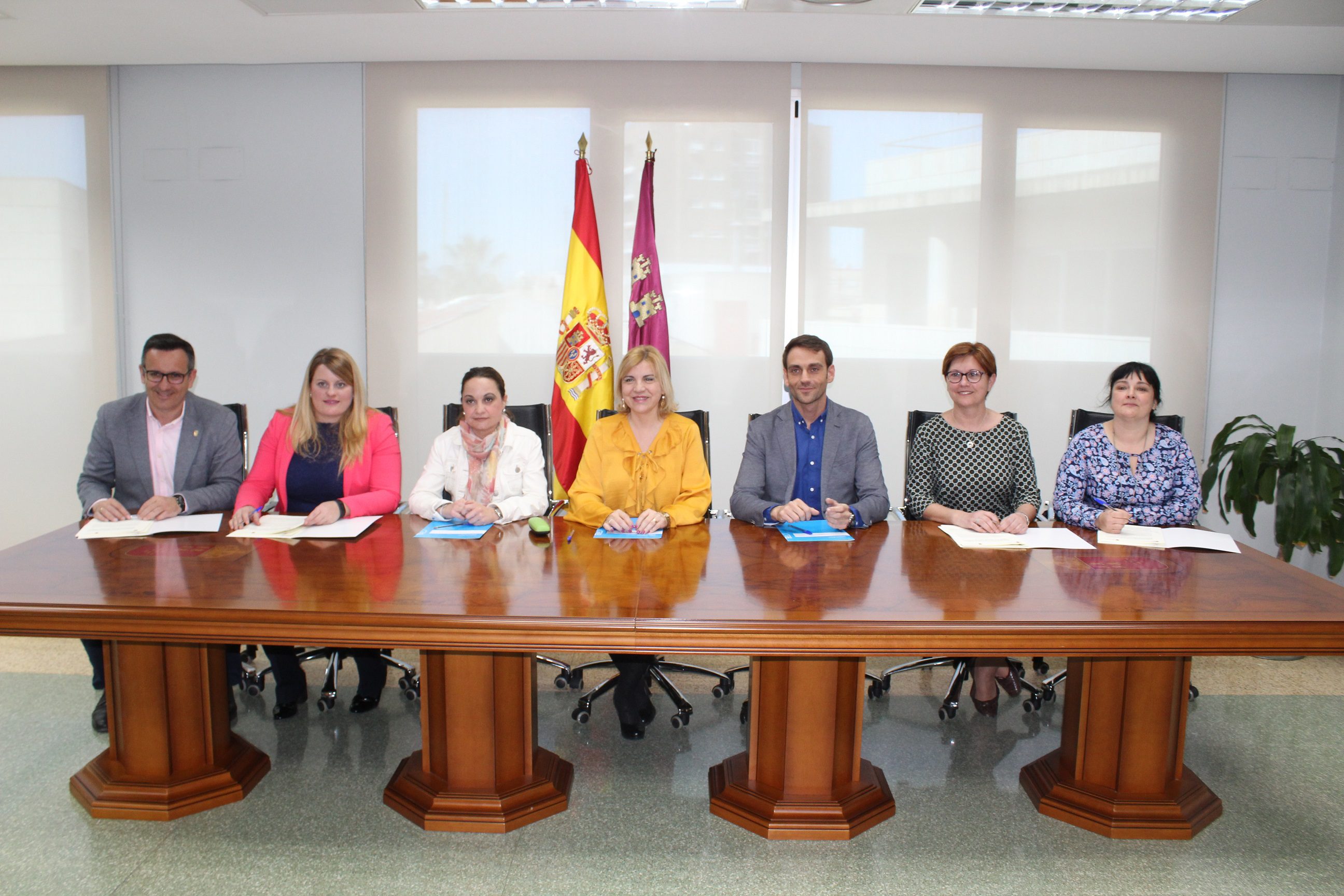La alcaldesa de Jumilla, Juana Guardiola, y la consejera de Familia e Igualdad de Oportunidades, Violante Tomás, han firmado el convenio de colaboración para impulsar el intercambio de datos en materia de Servicios Sociales y la puesta en marcha de un expediente único.