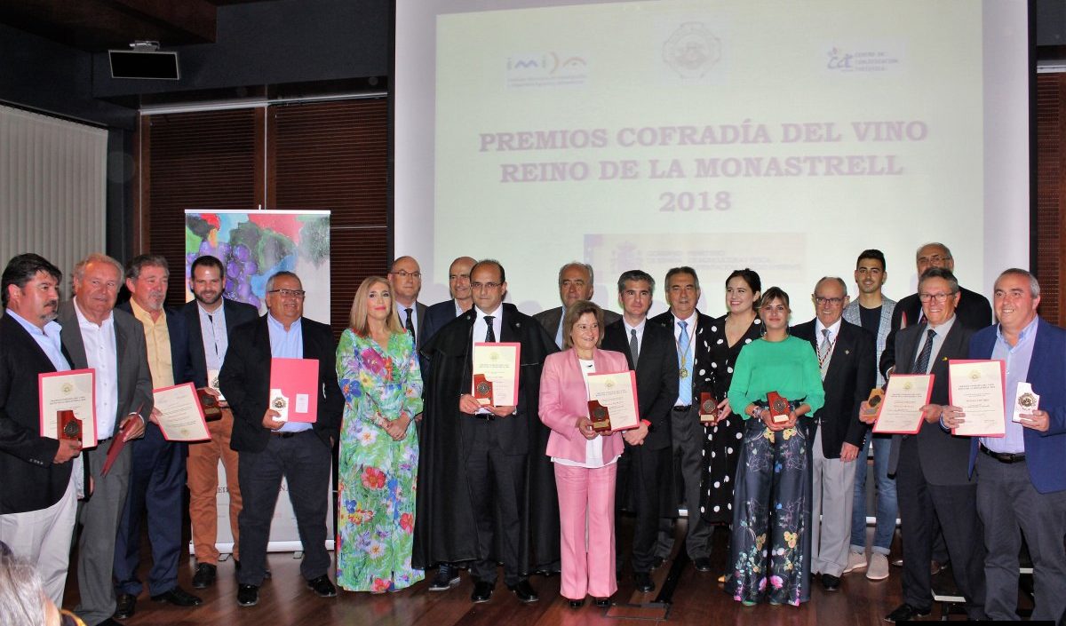 La pasada semana se entregaron los premios 2018 que convoca la Cofradía del Vino Reino de la Monastrell, un concurso de carácter nacional que está reconocido por el Ministerio de Agricultura y Pesca, Alimentación y Medio Ambiente y que se desarrolla con la asistencia de la Consejería de Agua, Agricultura, Ganadería y Pesca de la Comunidad Autónoma de Murcia, a través de la Estación Enológica del Instituto Murciano de Investigación y Desarrollo Agrario y Alimentario.