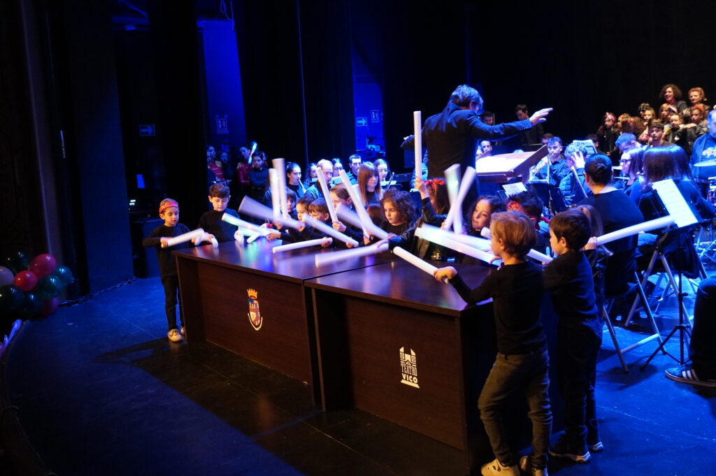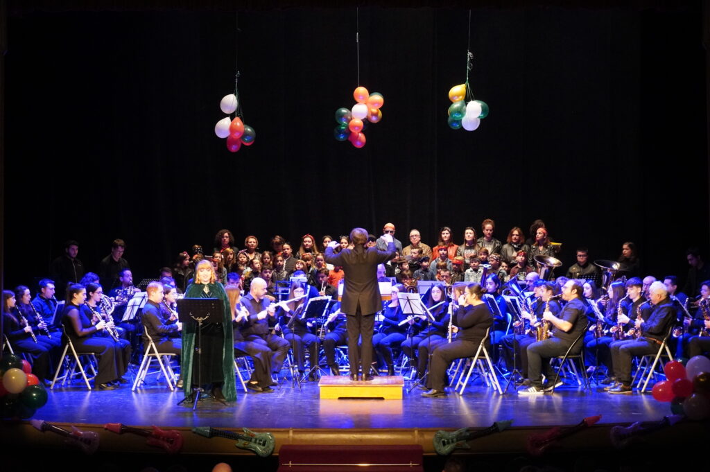La cuidada puesta en escena reforzó el carácter didáctico del concierto, donde tuvieron especial protagonismo los niños del coro que compartieron escenario con la banda, mostrando así el trabajo formativo que se desarrolla desde la AJAM, fomentando la cultura musical desde edades tempranas, demostrando que la música de banda puede ser también muy divertida y cercana.