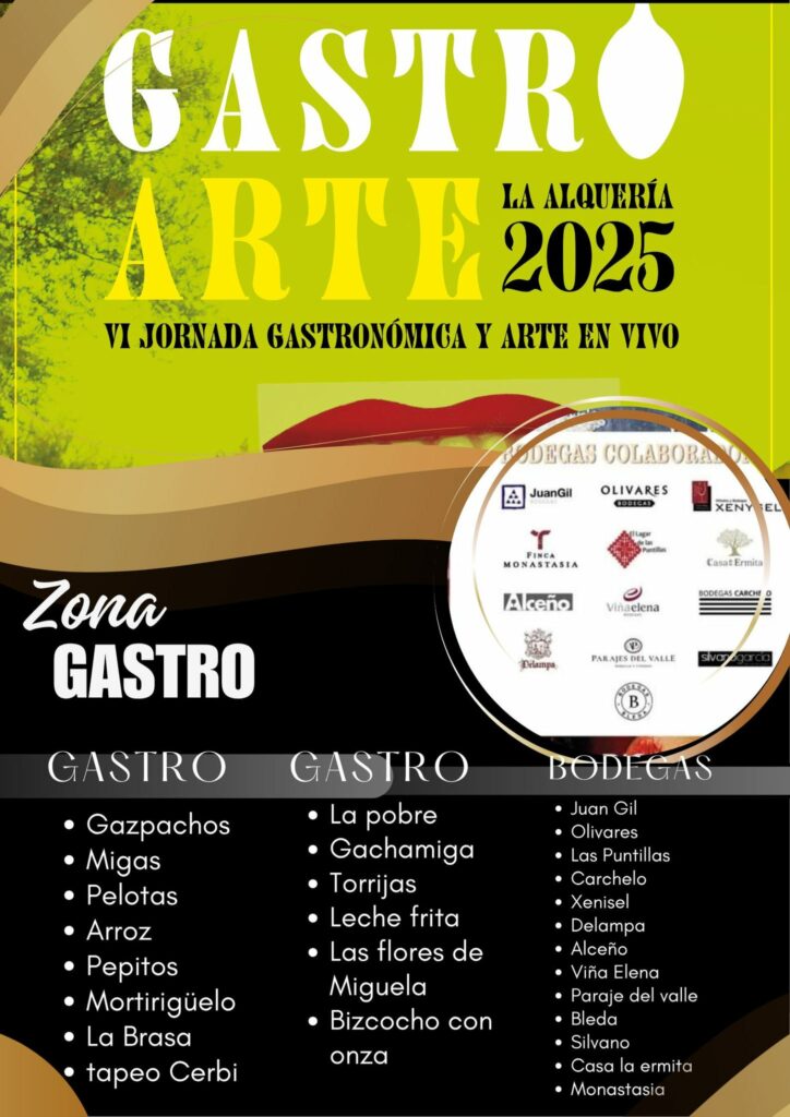 Desde la asociación de vecinos de La Alquería y su pedánea Antonia García, animan a todos a disfrutar de una nueva edición de GastroArte. La venta de cartillas para asistir a la jornada tiene un precio de 25 euros para adultos y 10 para los niños, e incluyen cinco tapas, tres bebidas y una copa; y dos montaditos, patatas fritas, postre y bebida, respectivamente.