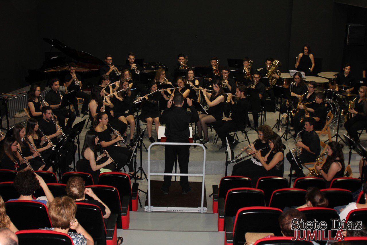 La Banda del Conservatorio de Música de Jumilla realizó un concierto el pasado viernes cuyo programa comenzó con el estreno absoluto del pasodoble “Tarde de Feria” que ha sido compuesto por el integrante de la propia banda de música, Pablo López Bernal. Por este motivo, el director titular de la agrupación, César Gómez Sánchez, cedió la batuta al joven jumillano que fue el encargado de dirigir su composición en la primera vez que se interpretaba ante el público.