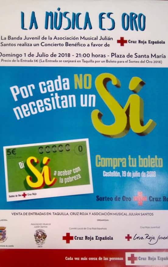 Bajo el eslogan ‘La música es oro’. La banda juvenil de la Asociación Musical Julián Santos ofrece este próximo domingo un concierto a beneficio de Cruz Roja Española. La cita será a partir de las 21:00 horas en la plaza de Santa María.