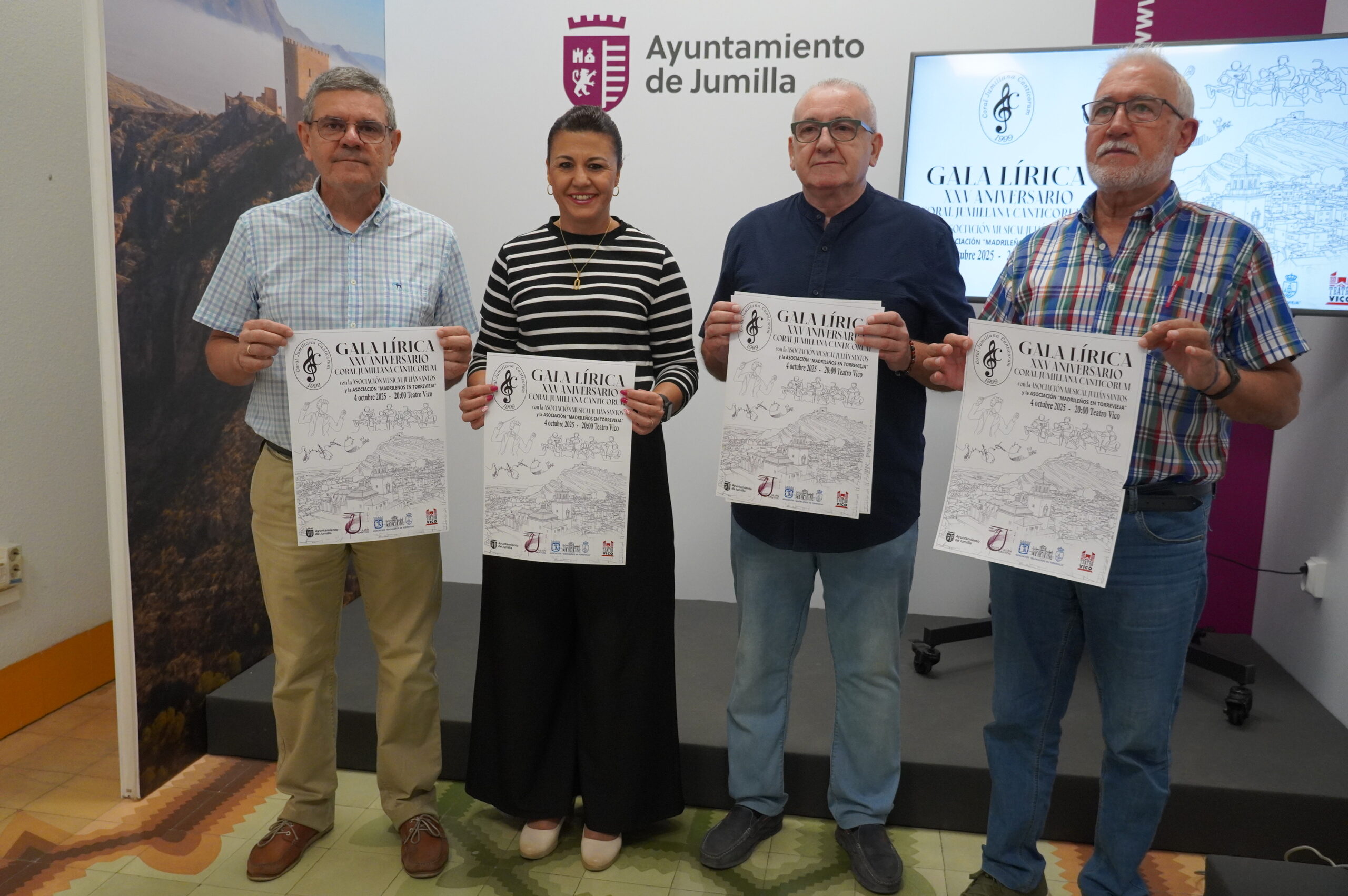 El evento ha sido presentado por parte de la concejal de Cultura, Asun Navarro, el presidente de la coral, José Bernal, y el presidente de la Julián Santos, Juan José Mira.