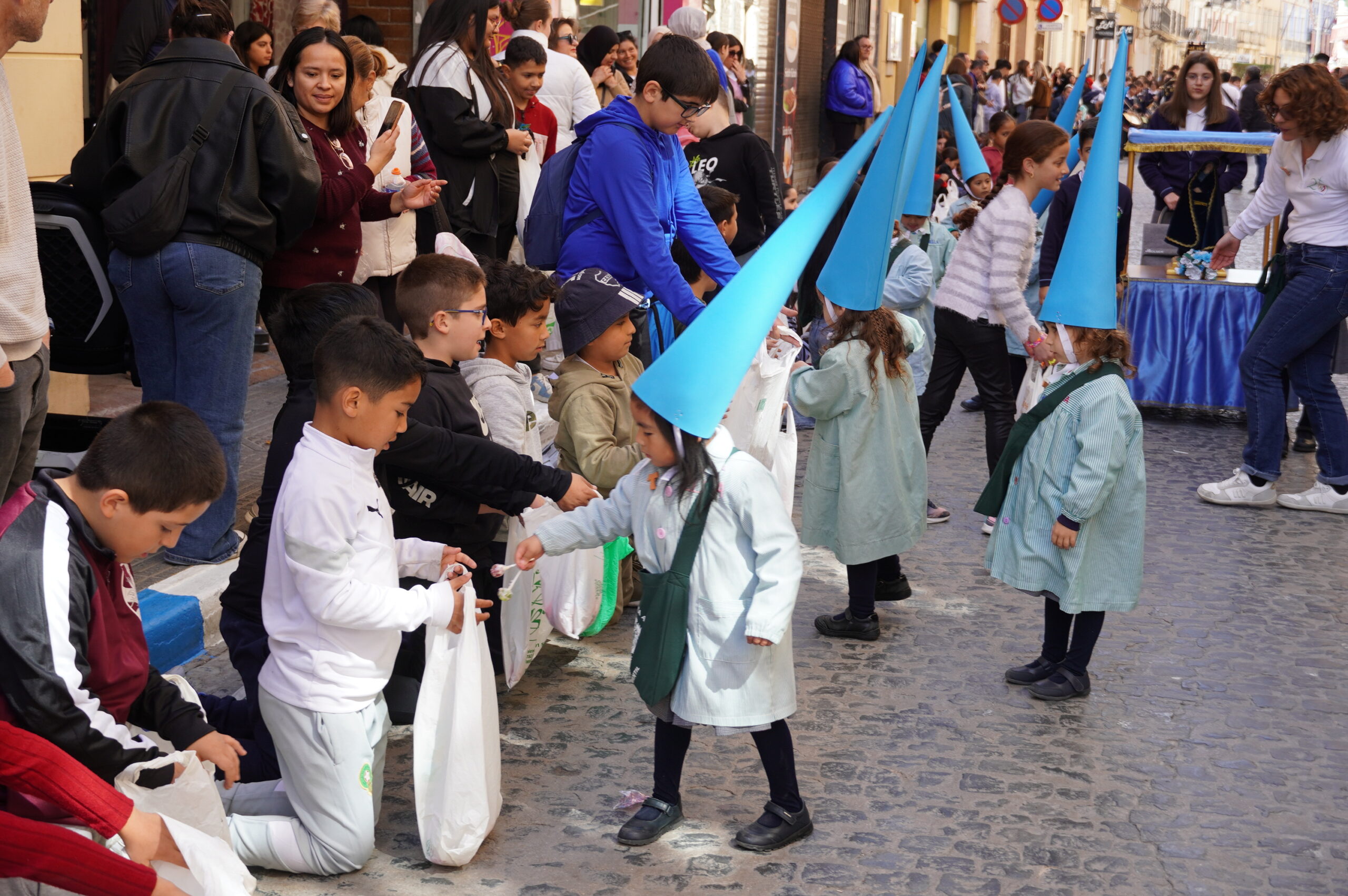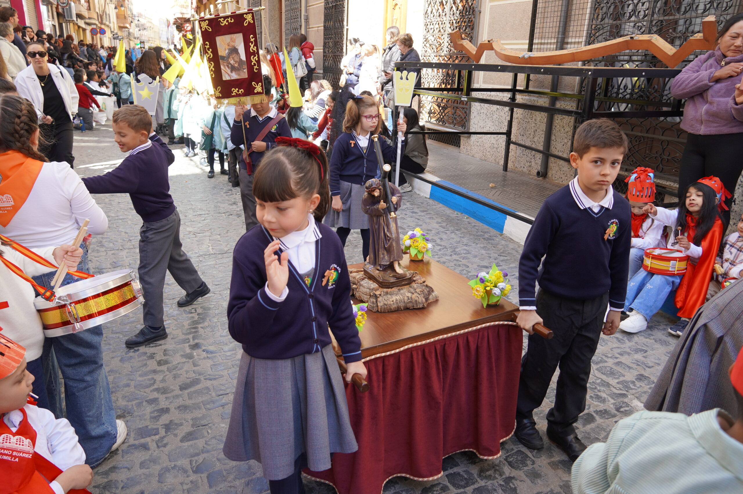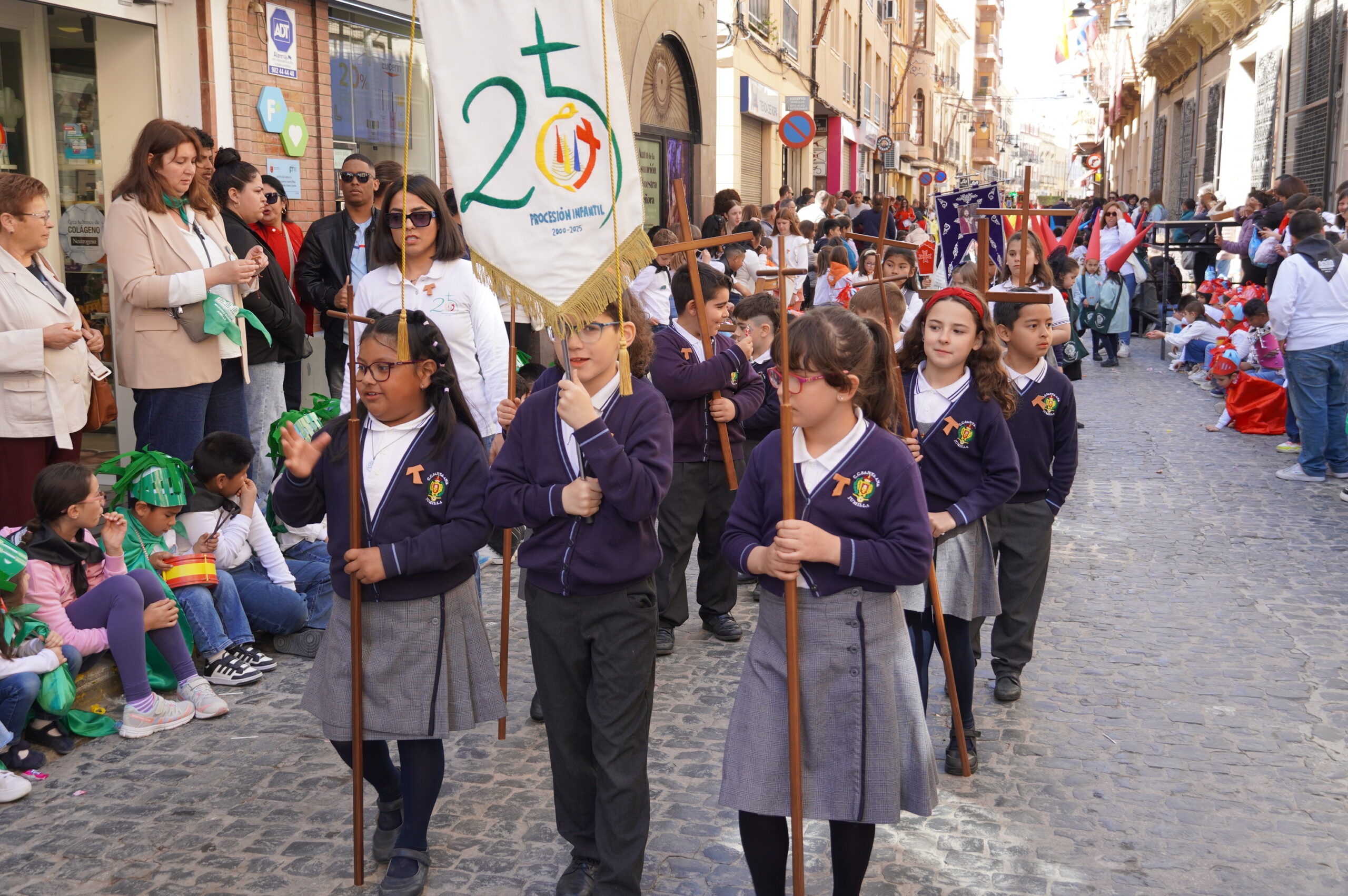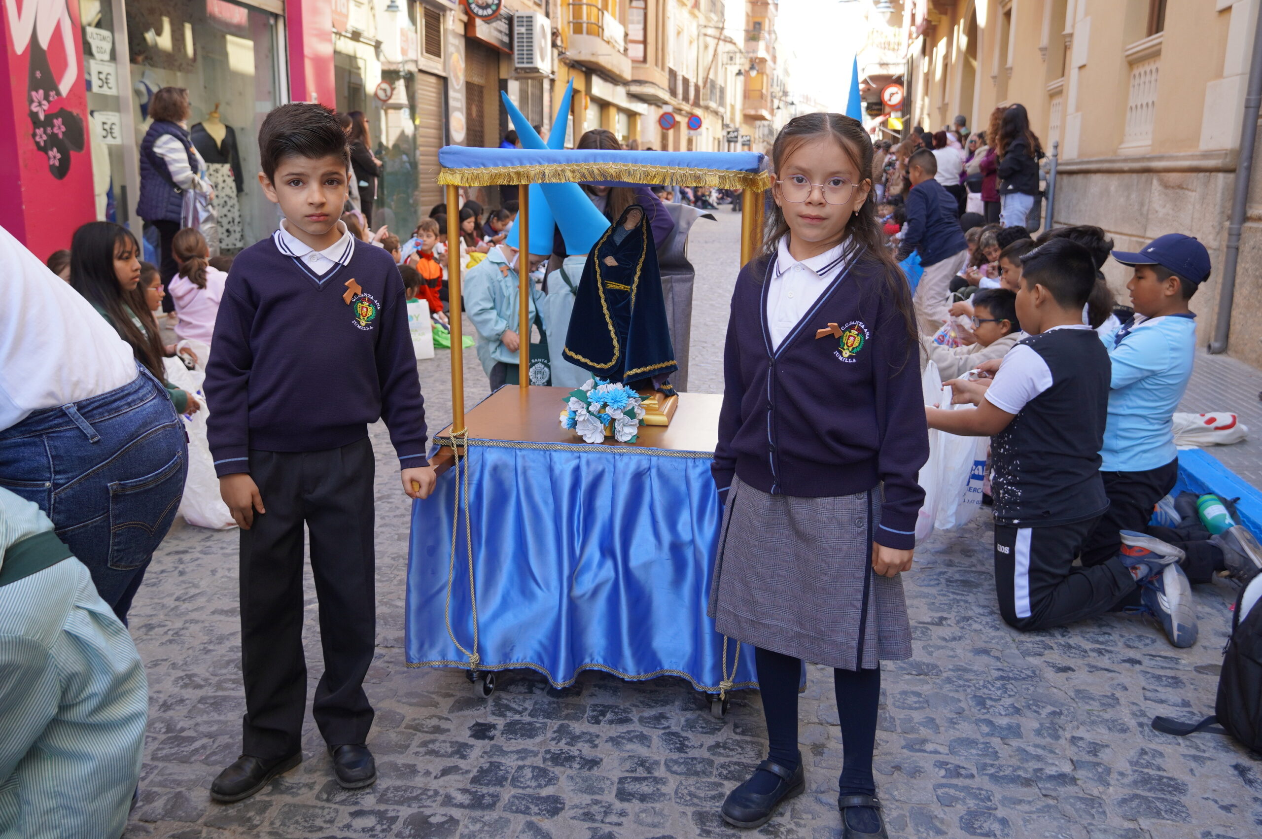 La calle Cánovas del Castillo se llenó, un año más, de niños y mayores, durante la mañana de Viernes de Dolores. El objetivo: contemplar y disfrutar de la procesión del colegio Santa Ana, un desfile donde se pone de manifiesto la ilusión de los más pequeños.