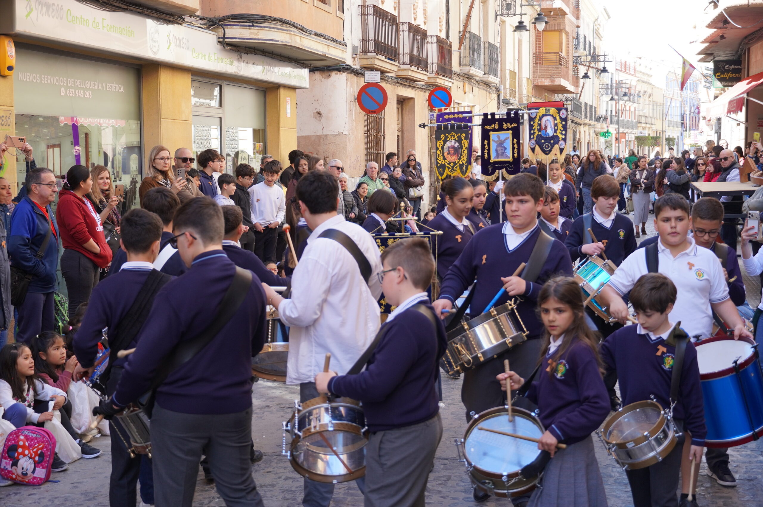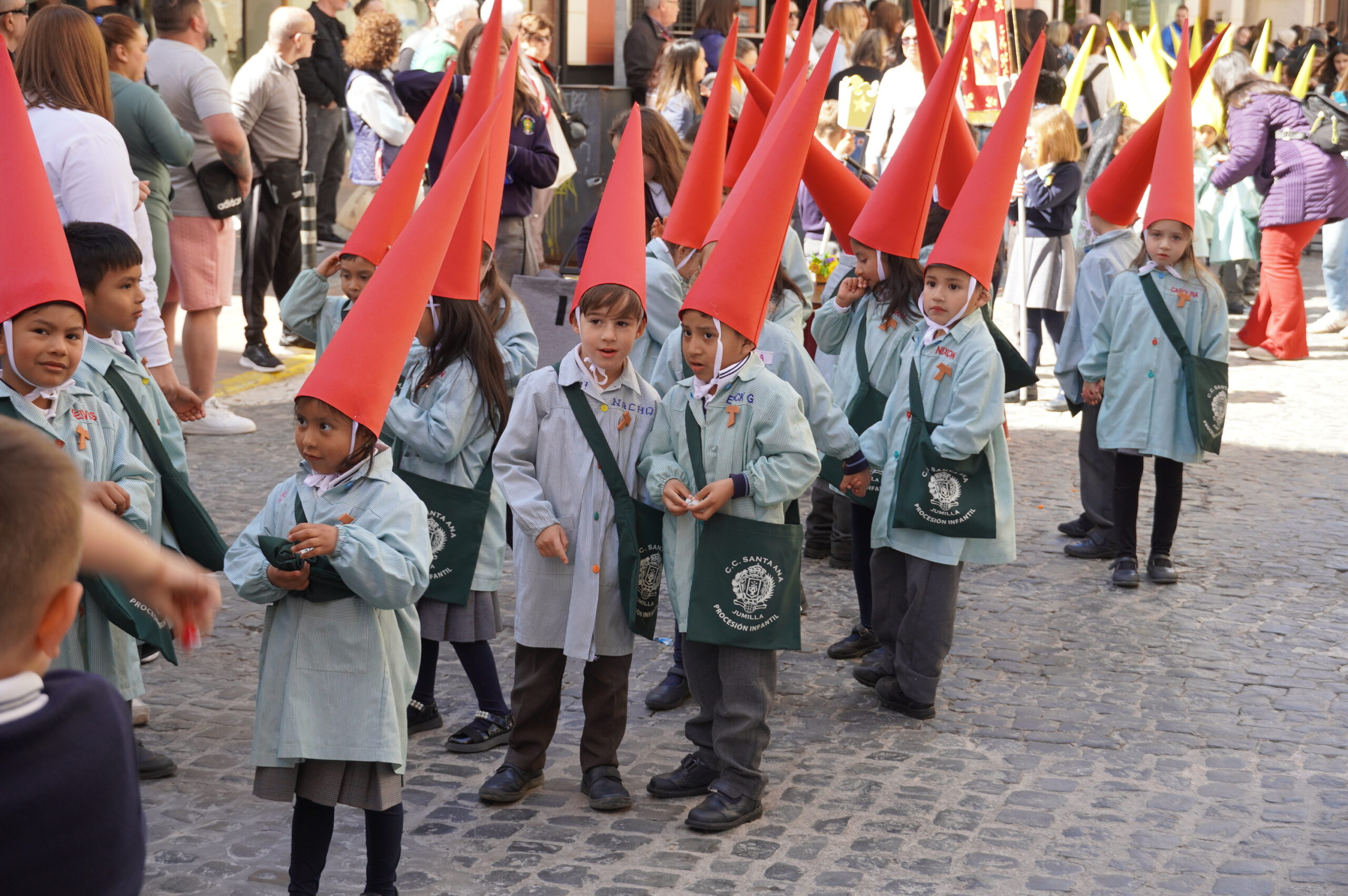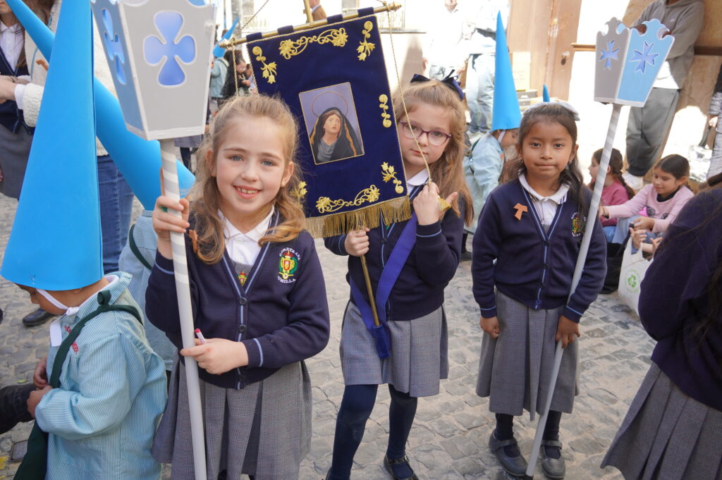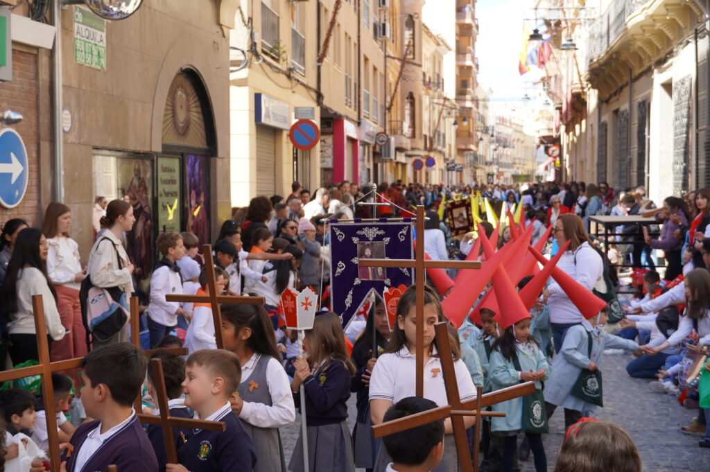 La calle Cánovas del Castillo se llenó, un año más, de niños y mayores, durante la mañana de Viernes de Dolores. El objetivo: contemplar y disfrutar de la procesión del colegio Santa Ana, un desfile donde se pone de manifiesto la ilusión de los más pequeños.