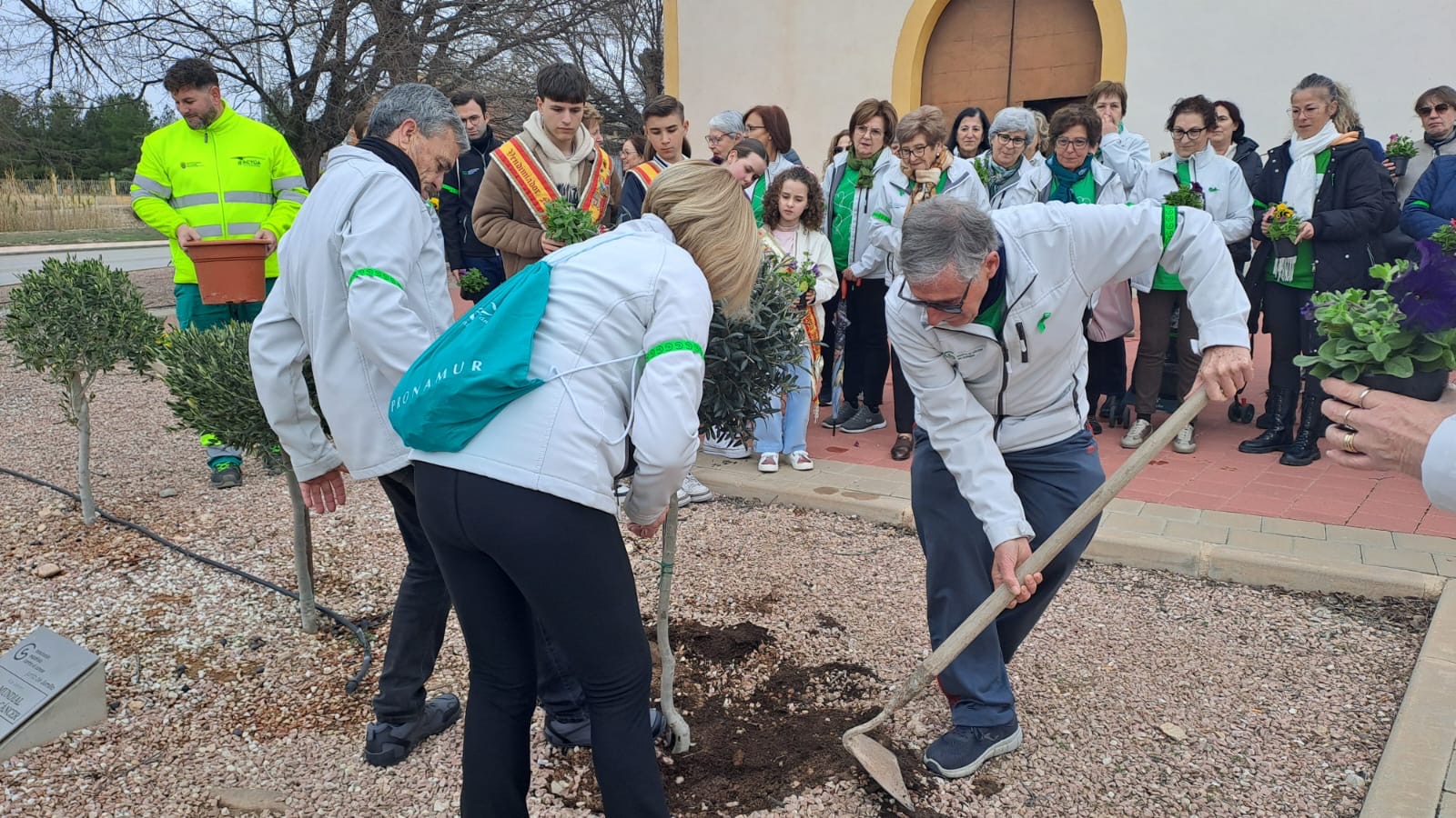 Allí se llevó a cabo una plantación simbólica de macetas y un olivo como gesto de apoyo a la investigación y de compromiso colectivo frente al cáncer.