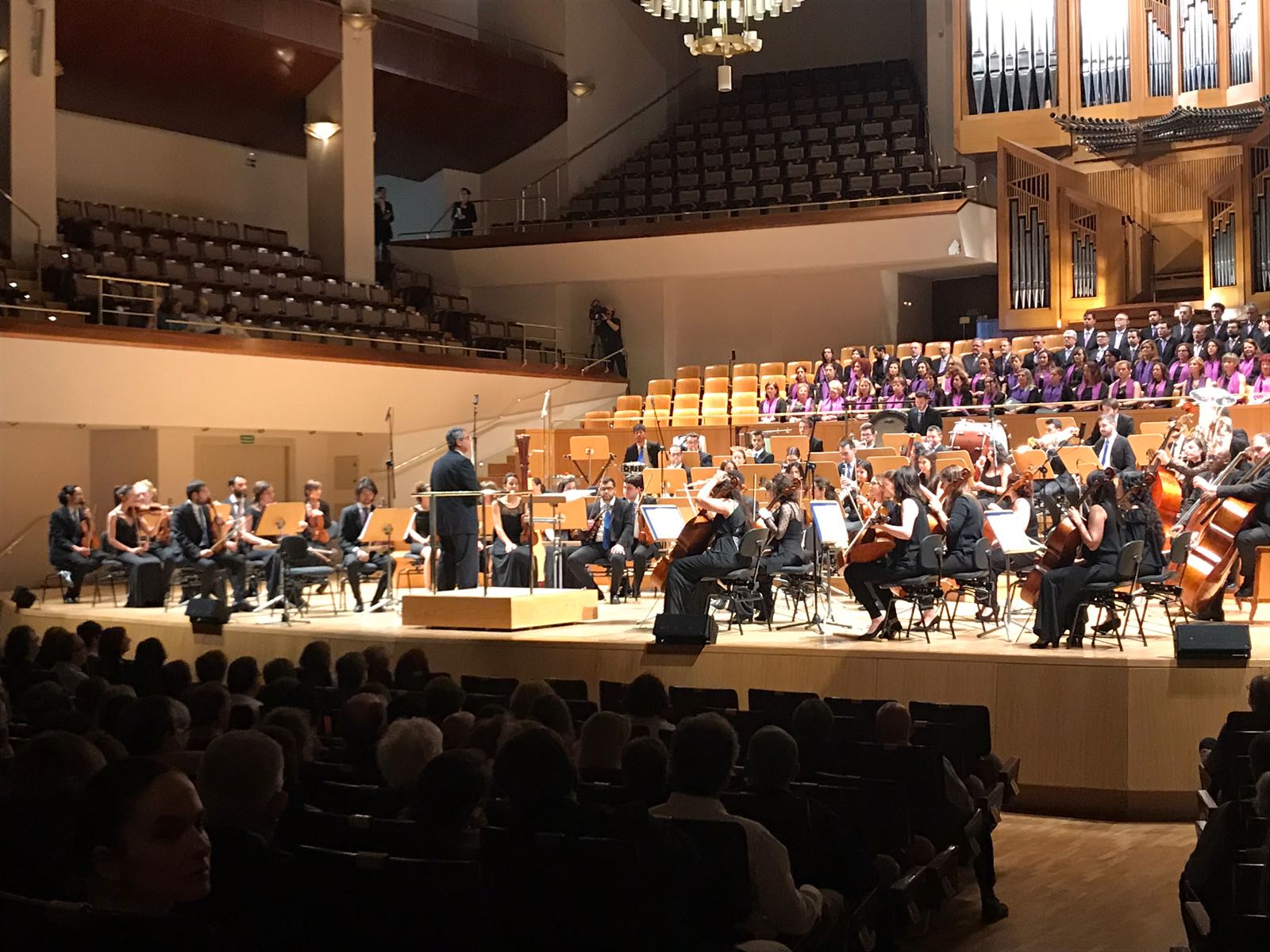 El ambiente en el Auditorio Nacional de Madrid, presagiaba anoche lo que minutos más tarde iba a ocurrir, con un espectacular concierto de la Orquesta Sinfónica de la UCAM, bajo la dirección de un seguro y elegante Borja Quintas, donde se pudo disfrutar de dos un programa con dos partes muy bien diferenciadas, una con un paseo por la ópera con la imponente voz de la soprano Cristina Toledo; y la segunda con el “Réquiem de Carl Jenkins”.