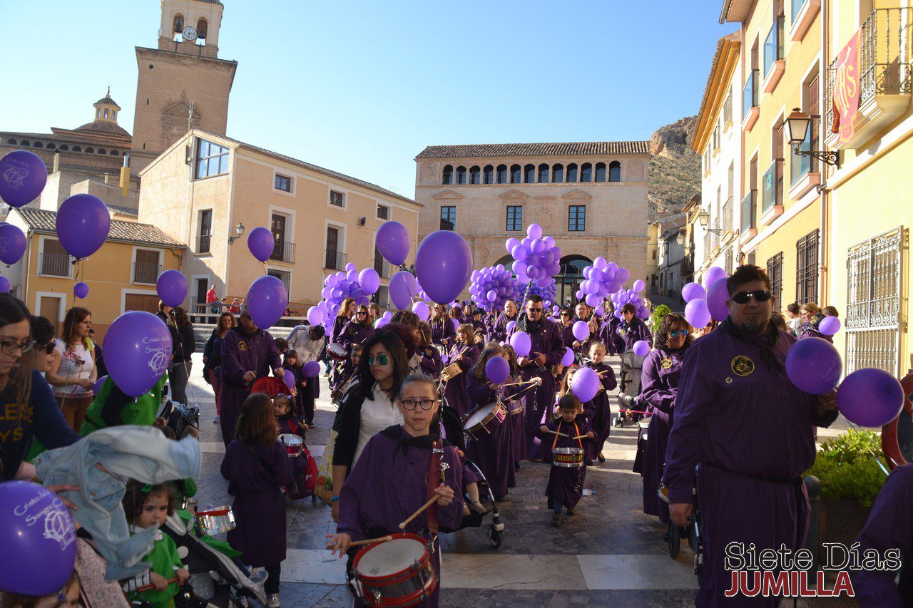 Las calles de Jumilla se llenaron el pasado Lunes Santo de la pequeña marea morada en la Tamborada Infantil que desarrolla la Asociación de Tambores Cristo de la Sangre de Jumilla. De nuevo, esta actividad tuvo carácter solidario ya que lo aportado por los participantes se entregará a Caritas Jumilla para repartirlo entre las personas más necesitadas.