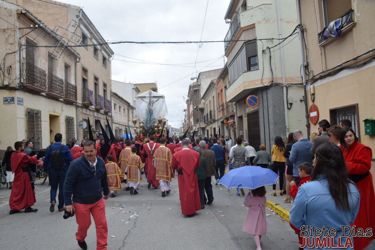 Todas las imágenes estaban ya en la calle e iniciada la procesión y con las primeras gotas llegó la orden de suspensión de la JCHSS