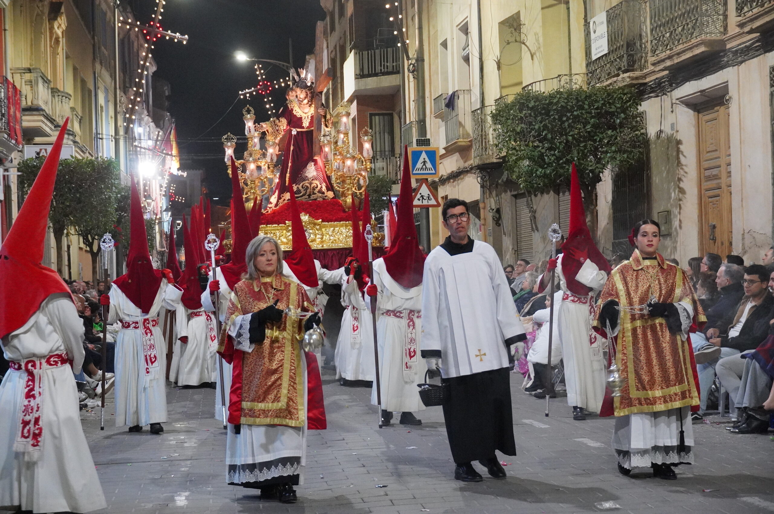 Participan doce imágenes de nueve hermandades, y parten desde la antigua iglesia de Santa María finalizando en la esquina de calle Pasos, junto a la iglesia de El Salvador.