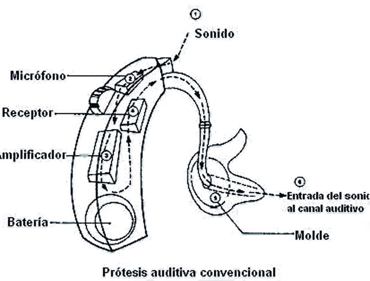 Todos los audífonos  constan de 5 partes: Micrófono, procesador digital-amplificador, receptor, control de volumen y pila.