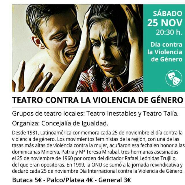 Según informan desde Intestables, se trata de una obra realista de denuncia social contra la Violencia de Género. La venta de entradas es hoy viernes de 18:00 a 20:00h y los precios establecidos son 5 euros butaca, 4 euros palco y platea y 3 euros, general.