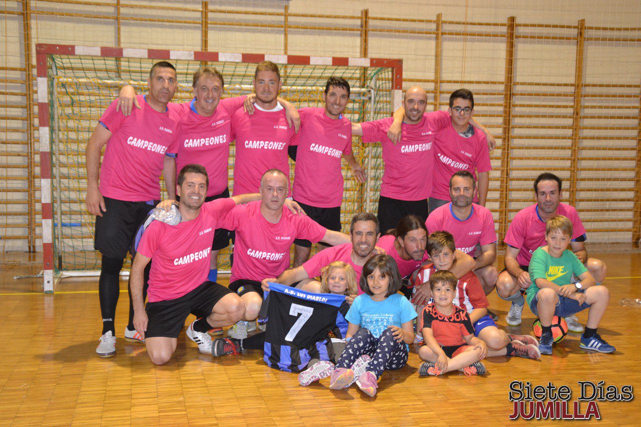 Los Diablos se ha proclamado campeón de la categoría de Veteranos de la Liga Local de Fútbol Sala tras su triunfo el pasado viernes ante Peña La Parra. El aspirante al título estaba obligado a ganar para arrebatarle el título a Peluquería Marcelino, y se impuso con claridad a su rival por 1-4.