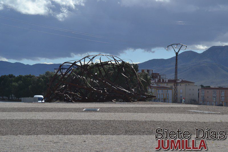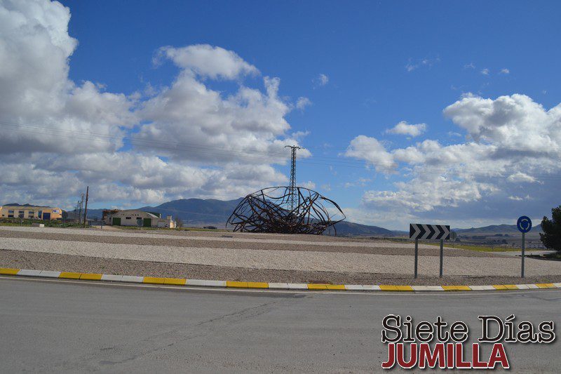 Los fuertes vientos que está sufriendo la comarca del altiplano durante esta mañana, de rachas de más de 90 kilómetros por hora han provocado el derrumbe de la estructura metálica de la rotonda del ‘Salicornio’.