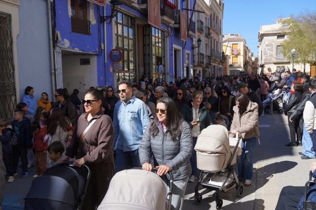 Este traslado es muy peculiar ya que la imagen de Salzillo va acompañada y rodeada de multitud de niños y niñas, junto a sus familiares, a lo largo de todo el recorrido.