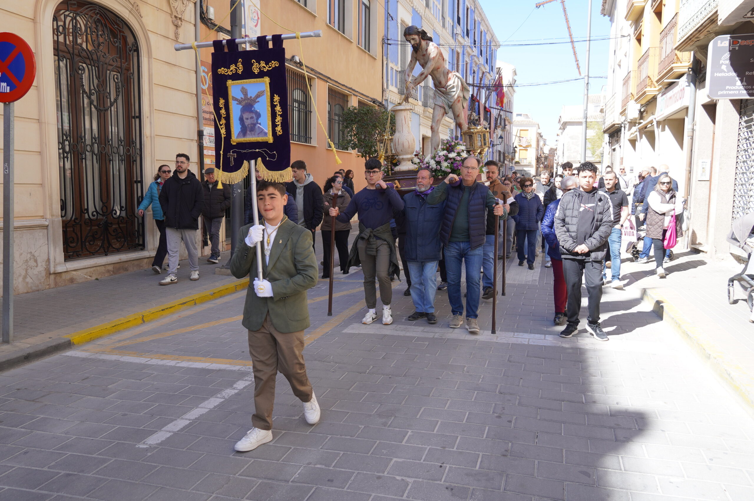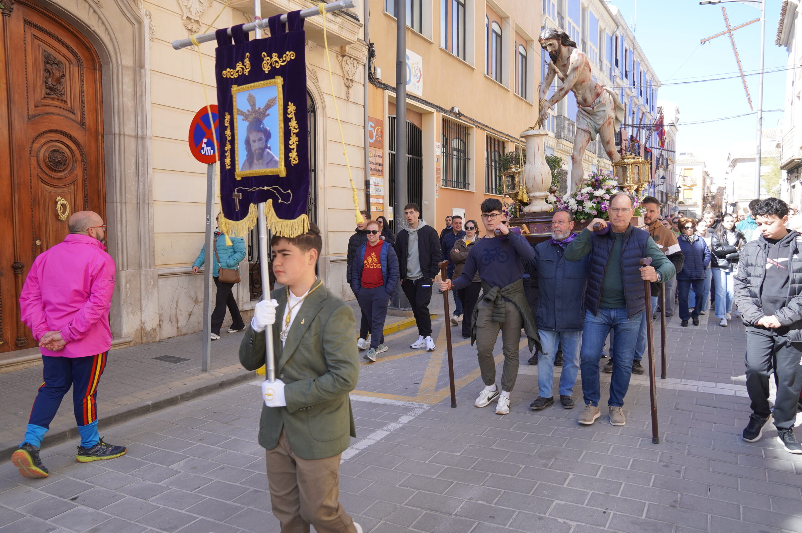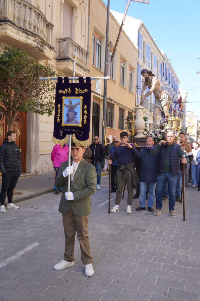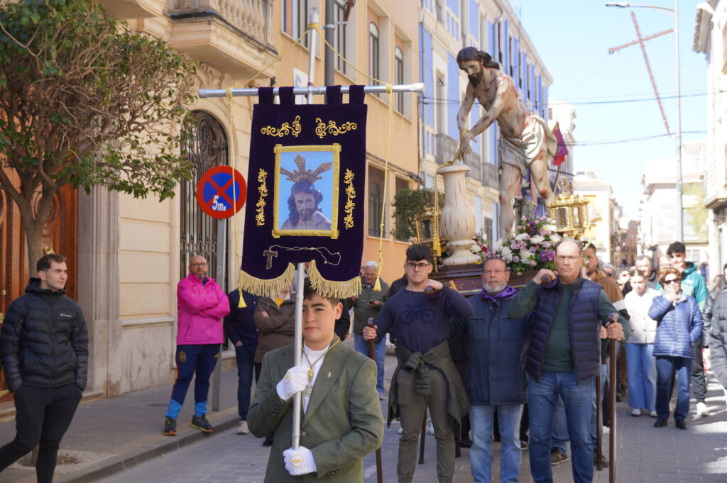 La imagen del Cristo Amarrado a la Columna se encuentra en Jumilla para su participación en las procesiones. Tras la bajada desde Santa Ana, la primera parada fue la Parroquia Mayor de Santiago y ya en la mañana de Lunes Santo, la talla religiosa fue trasladada a la sede de la hermandad que lleva su nombre donde permanecerá para la visita y culto de los fieles.