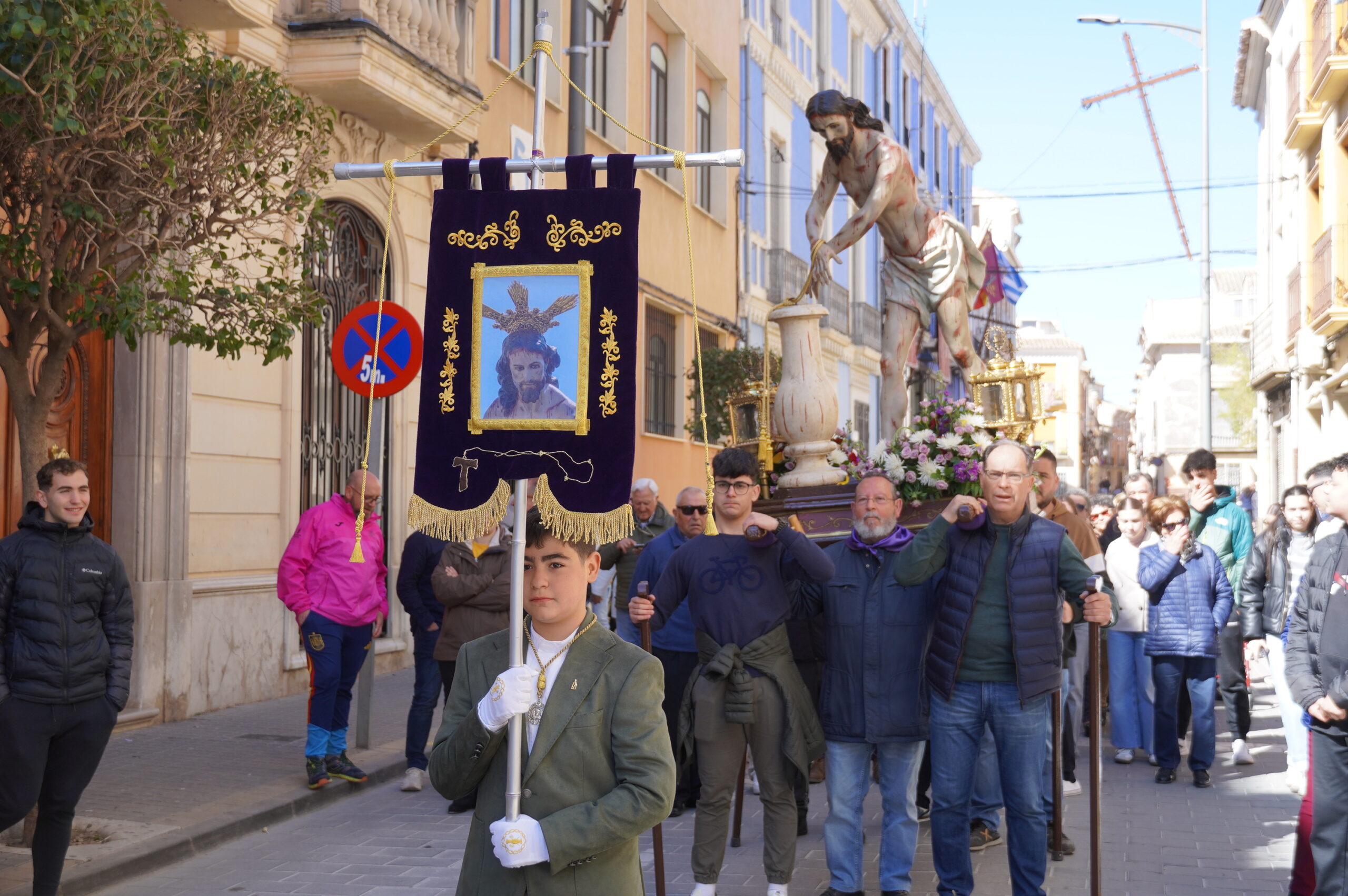 Y, también como es tradicional, el Cristo Amarrado va portado a hombros por devotos.