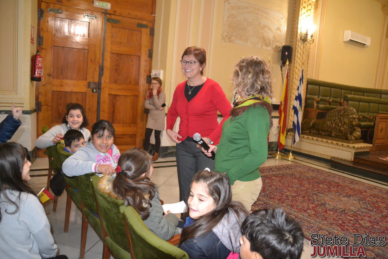 El pasado martes los alumnos del colegio Mariano Suárez visitaron el Ayuntamiento. Los pequeños fueron recibidos en el salón de plenos por la alcaldesa de Jumilla, Juana Guardiola y la concejal de Educación, Salvi Pérez. Tras explicar una breve historia sobre el edificio, la primera edil tuvo que contestar a las como siempre divertidas y a veces comprometidas preguntas de los niños.