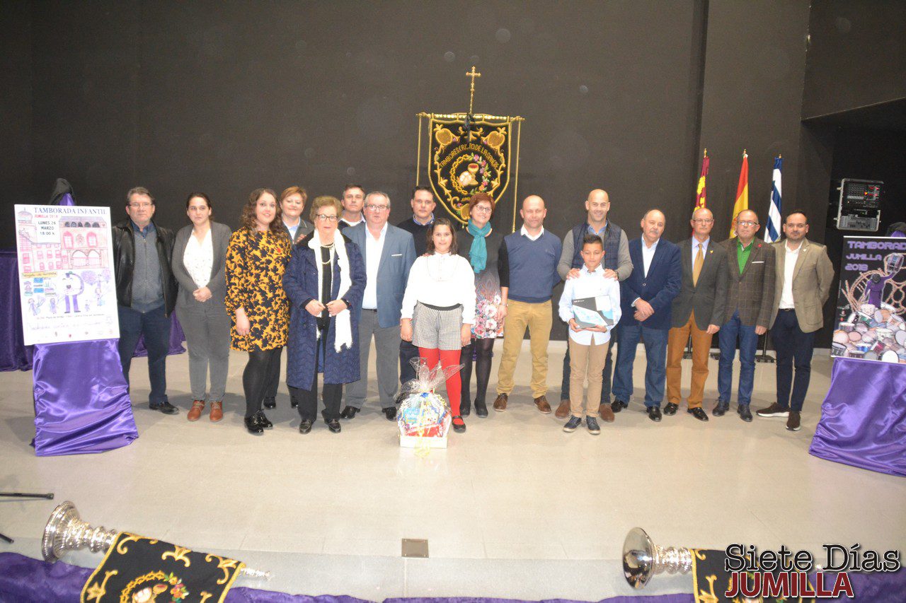 El pasado sábado fueron presentados, ante un abarrotado auditorio del Conservatorio Profesional de Música, los actos y carteles de las Tamboradas 2018. El cartel general de este año es obra de Francisco Fernández, que subió al escenario y recibió de manos del presidente de la asociación, Francisco Guardiola, un obsequio a modo de cartel en miniatura. El propio autor explicó su obra, “que representa a un niño que corona una montaña de tambores, cansado tras una jornada tocando el tambor”.