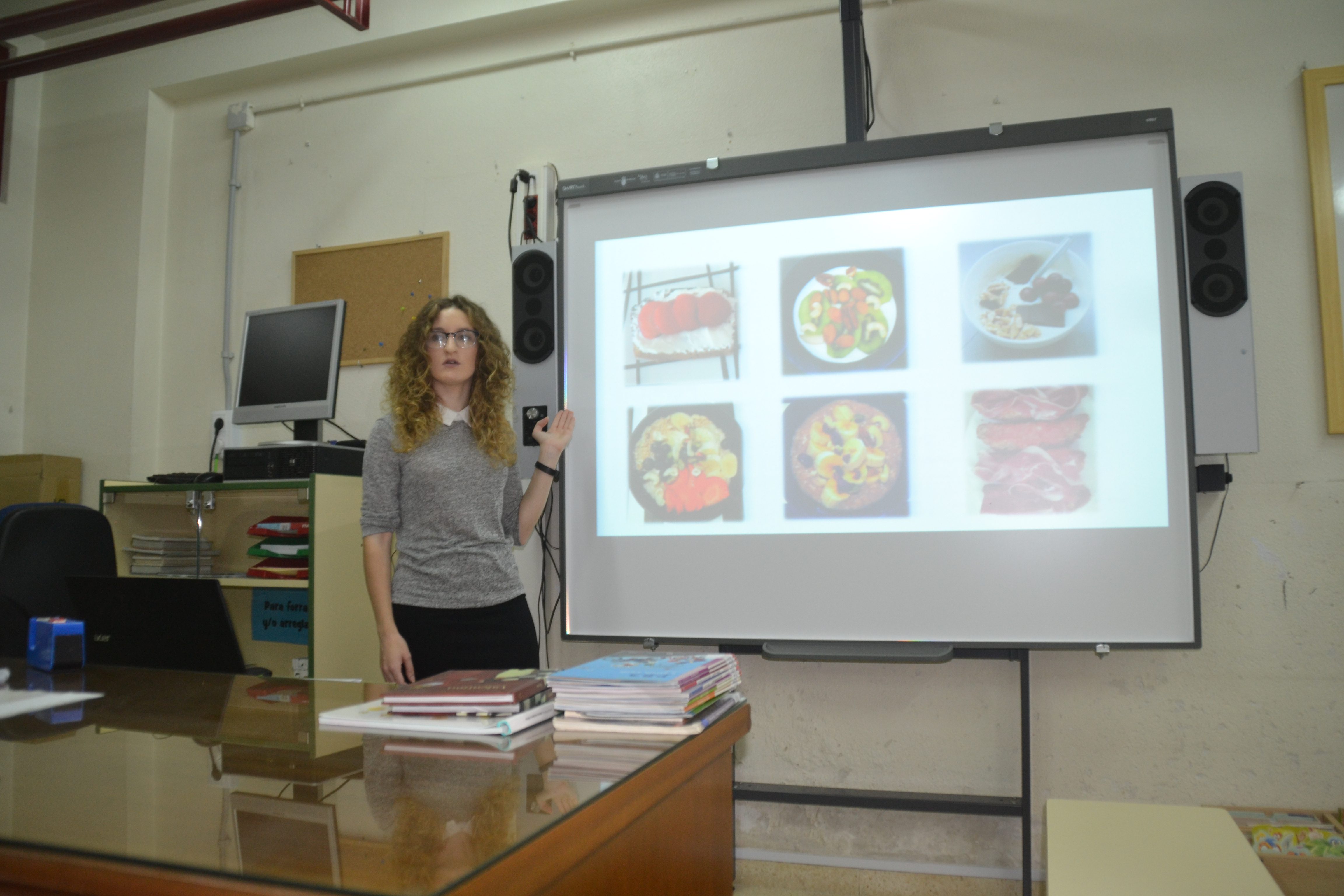 La conferencia tuvo el objetivo de potenciar la dieta saludable y los buenos hábitos alimenticios entre toda la comunidad educativa. La biblioteca del colegio acogió la charla que corrió a cargo de la dietista-nutricionista Lucía Reina que se encargó de ilustrar a los alrededor de treinta asistentes, entre padres y docentes, en los diferentes puntos a los que se debe dar importancia a la hora de alimentar a los niños durante su estancia en el centro. Así, la dietista dio mucha importancia a un buen desayuno a base de cereales y fruta, leche o dulces elaborados de forma casera. También destacó el almuerzo en el recreo, del que “la bollería industrial, nunca debería formar parte”.