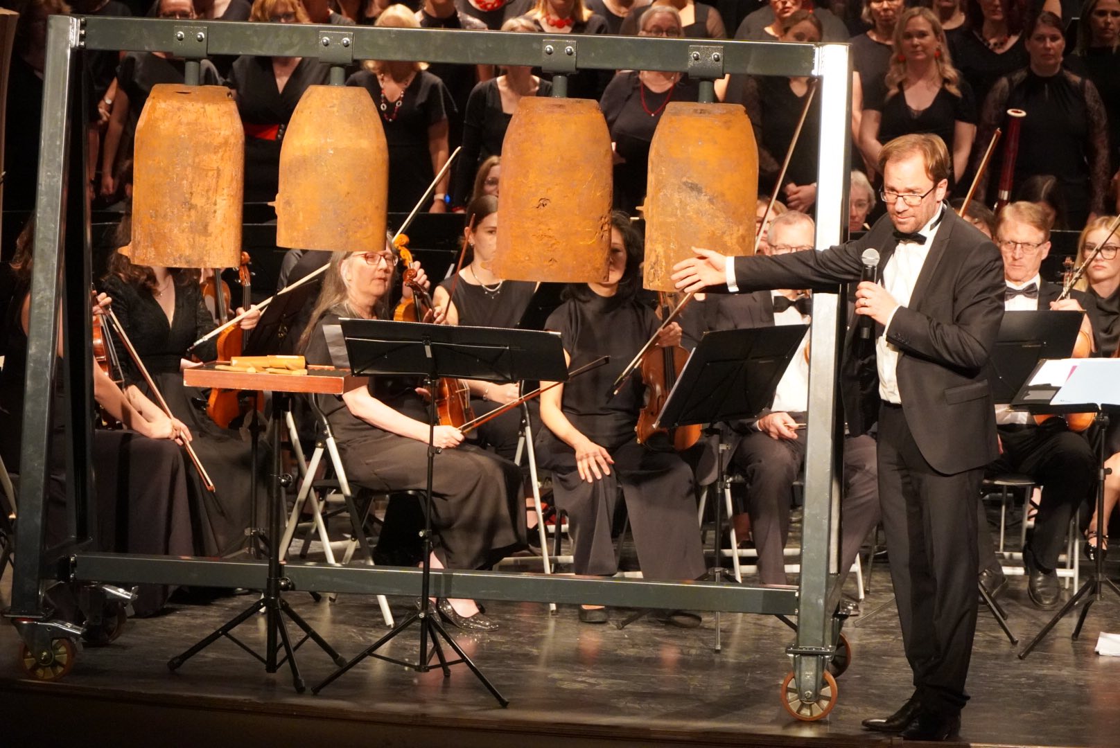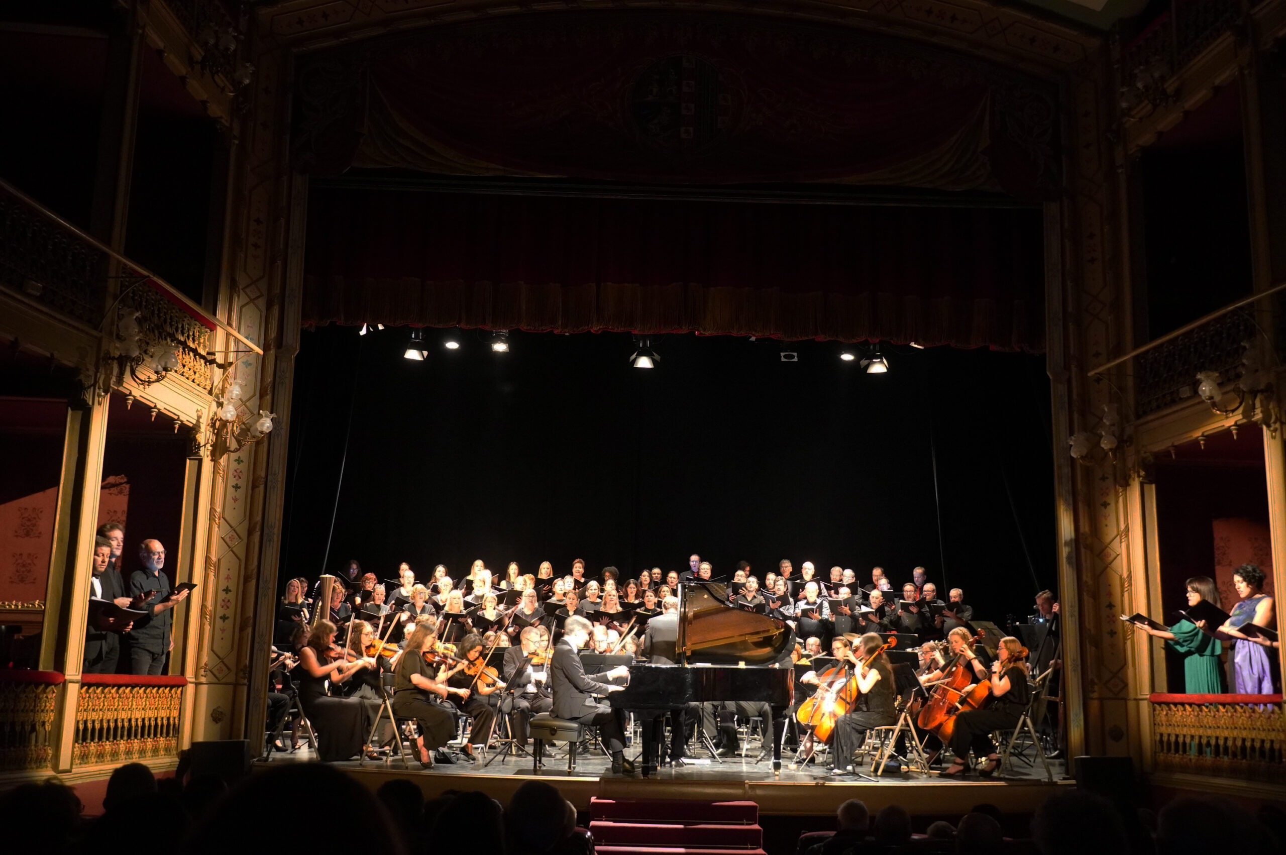 Más de cien artistas, entre músicos y cantantes, ocuparon el escenario del Teatro Vico, en el concierto ofrecido por la Orquesta Hochsauerlandkreis, de Alemania, junto a los coros Schüttler-Chor, de la Escuela de Música del distrito Hochsauerland, y el Coro Diatessaron de Molina de Segura.