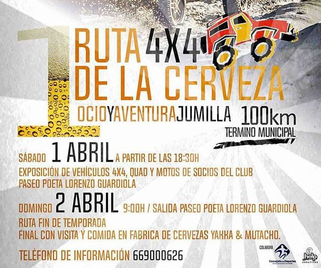Este fin de semana el motor y la cerveza tienen una cita en la localidad con la I Ruta 4×4 de la Cerveza Ocio y Aventura Jumilla. Eso sí, que nadie se alarme. Juntos, pero no revueltos. Primero a quemar gasolina y después a degustar las mejores rubias artesanales del momento.