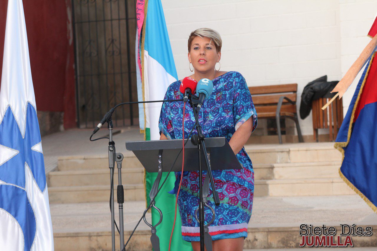 La consejera de Portavocía y Comunicación del Gobierno Regional, Noelia Arroyo fue la encargada el pasado sábado de pregonar la 31 edición de las Fiestas de Moros y Cristianos de Jumilla. El acto tuvo lugar en la plaza de Santa María y antes la pregonera fue recibida en el Ayuntamiento de Jumilla, por parte de la alcaldesa Juana Guardiola, distintos concejales y otras autoridades. Noelia Arroyo fue presentada por María Ángeles Mohedano, integrante de la Asociación de Moros y Cristianos don Pedro I.
