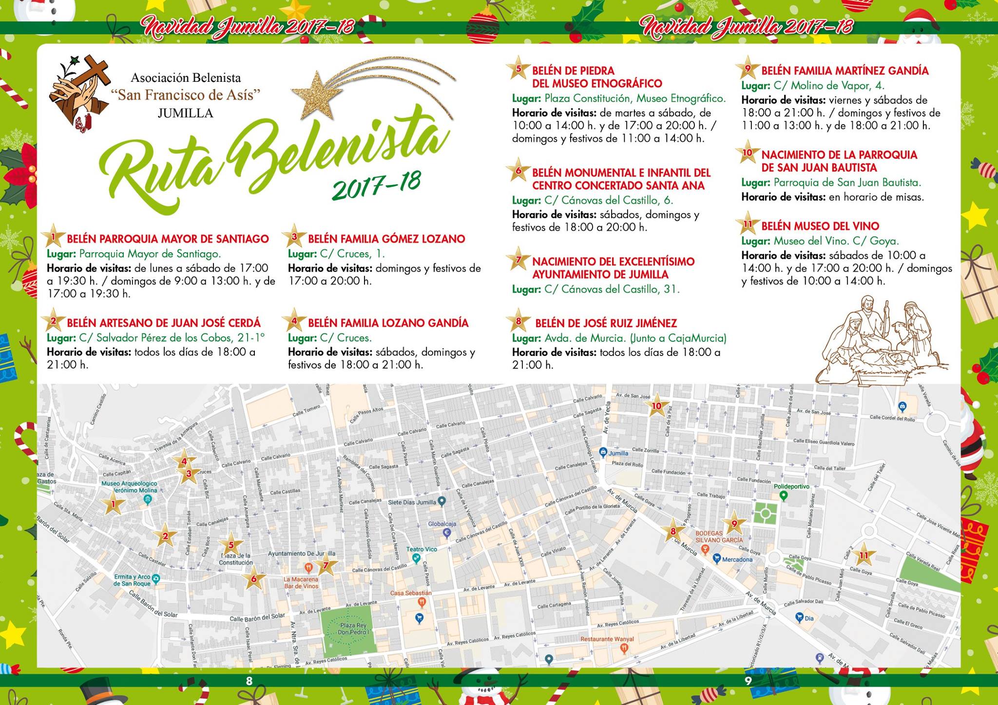 En horario de 10:30-13:30 se desarrollará la actividad infantil y también solidaria ‘Oca Navideña’. En este caso se llevará a cabo en el jardín del barrio de San Antón y está organizada por las asociaciones de vecinos y la Concejalía de Cultura y Festejos. A las 12:00 de la noche se celebrará la tradicional Misa de Gallo en las distintas parroquias de Jumilla.