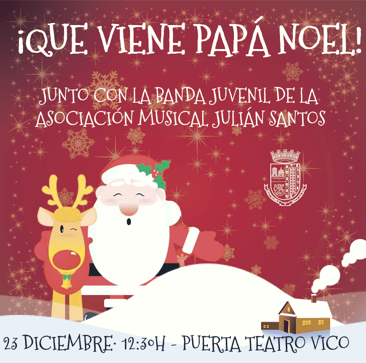 Para las 12:30 se ha programado la actividad ¡Que viene Papá Noel! Será en la puerta del teatro y contará con la participación de la banda juvenil de la Asociación Musical Julián Santos.