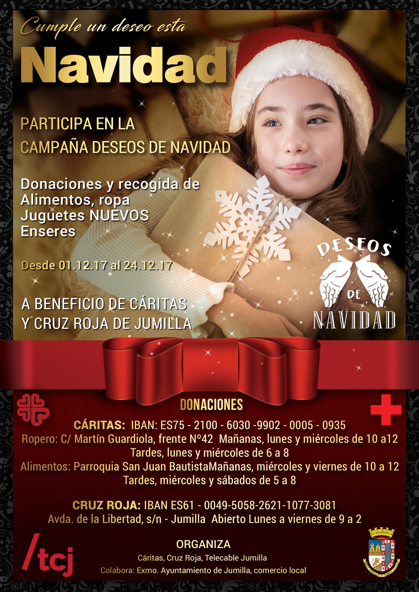El domingo 24 de diciembre, de 10:00 a 14:00 se llevará a cabo un programa especial solidario de la mano de Tele Jumilla. Esa mañana será una fiesta de celebración, alegría y solidaridad, para grandes y pequeños, en la que podrán participar todas las personas que lo deseen, aportando lo que estimen oportuno en las carpas habilitadas para tal fin, donde además se hará entrega del gran lote navideño al ganador. Será desde la puerta del Teatro Vico. Así habló de esta actividad, Juan Martínez colaborador de Tele Jumilla