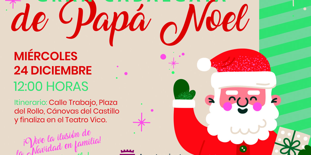 Partirá desde la calle Trabajo y continuará por Plaza del Rollo y la calle Cánovas del Castillo, finalizando en las puertas del Teatro Vico, donde se espera que Papá Noel reciba a los niños y niñas para recoger sus cartas y transmitirles toda la ilusión de estas fechas.