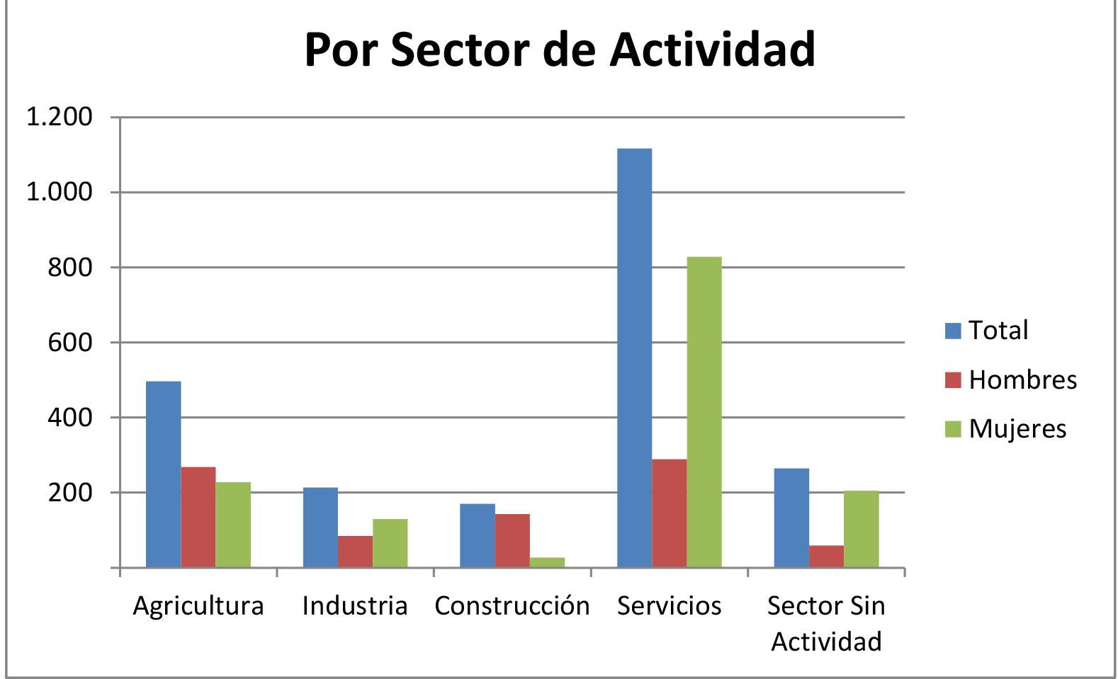 Por sectores económicos sigue siendo el sector servicios el que aglutina un mayor número de desempleados, con un pequeño aumento hasta el 49,40% del total, y es donde se concentra el grueso del desempleo femenino, seguido de la agricultura que ha bajado desde el 22,66% hasta el 21,94%. Desciende sobre un 1% el sector de la industria desde el 10,59% hasta el 9,46% del total de desempleados, e igualmente desciende casi un 1% (desde el 8,49% hasta el 7,52%) el sector de la construcción, suponiendo el 11,68% de los parados el sector sin actividad.