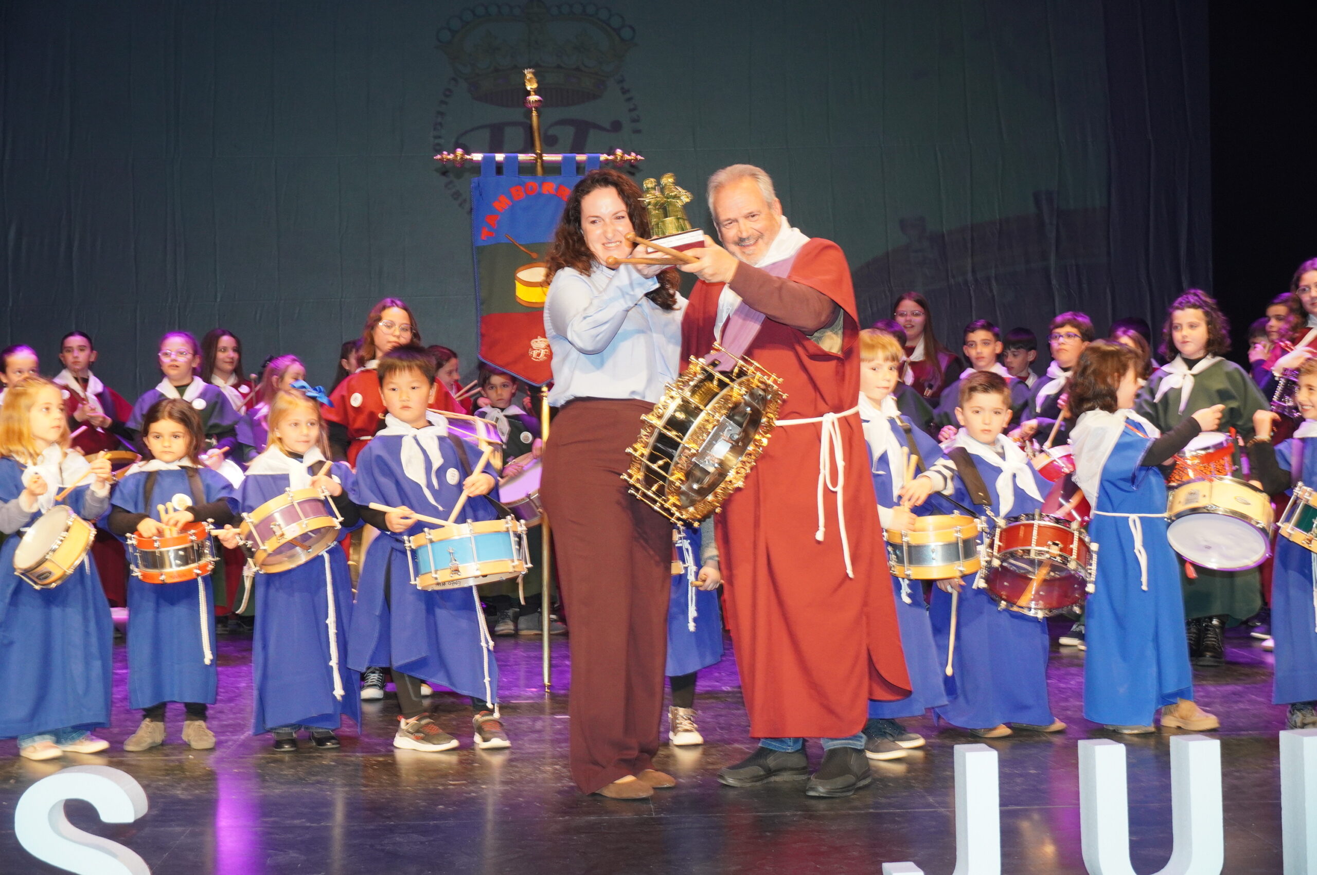 En ese mismo acto se nombró Tamborilero de Honor al CEIP Príncipe Felipe, en la persona de su directora Noelia Tomás Martínez, que recordó cómo en el 2004 nació la tamborada escolar como una iniciativa impulsada por el claustro, con tambores de latas y túnicas improvisadas, y aquella experiencia hoy queda consolidada hasta convertirse en una tradición educativa, que cada Viernes de Dolores, hace retumbar el patio y transmite valores de respeto y compañerismo.