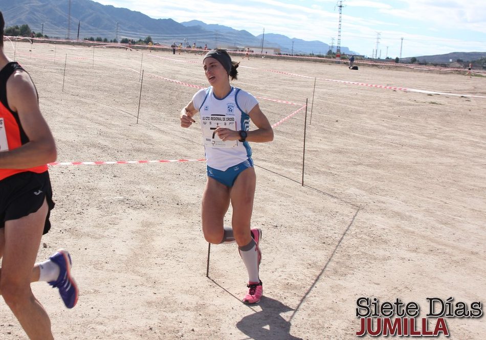 En categoría femenina Penélope Raquel Baños del Atlético San Sebastián repetía la victoria conseguida el año pasado y conseguía así su segundo título de Campeona Regional de Cross en Jumilla de manera brillante. Penélope superaba en casi 2 minutos a su más inminente perseguidora, la atleta abaranera del UCAM Athleo Cieza Amanda Cano y en algo más de 2 minutos a la tercera clasificada, la atleta del Fondista de Alcantarilla Almudena García.