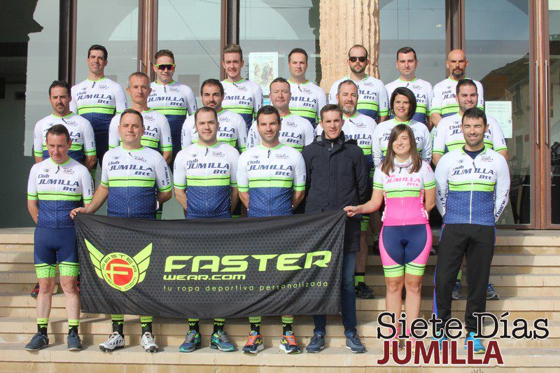El club BTT Jumilla consta de treinta y dos componentes, aunque fueron veinte de ellos los que este pasado domingo se dieron cita en la Plaza de Arriba para la presentación oficial del equipo en este año 2017. Entre los presentes se encontraban el presidente y el vicepresidente del club, Tino Díaz y Juan García, respectivamente, acompañados además por el ciclista profesional del Movistar Team, Rubén Fernández.