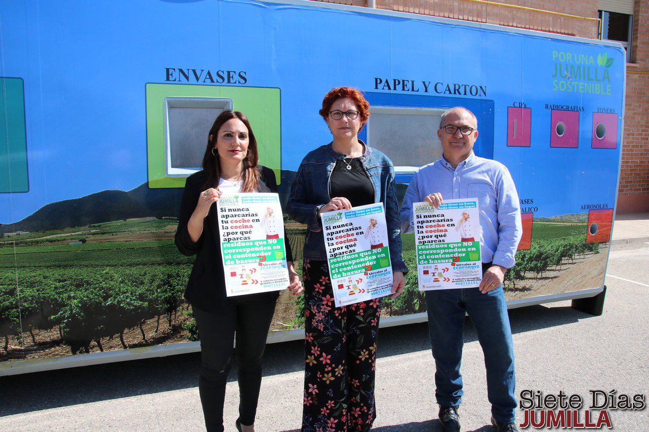 La alcaldesa y el concejal de Medio Ambiente han presentado una de las campañas medioambientales que se ponen van a poner en marcha durante este año. Bajo el lema ‘Si nunca aparcarías tu coche en la cocina, ¿por qué aparcas residuos que no corresponden en el contenedor de basura?’ se pretende que los ciudadanos sigan concienciándose del uso del Ecoparque y del servicio gratuito de recogida a domicilio.
