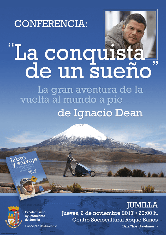 La Concejalía de Juventud ha organizado para el jueves 2 de noviembre una conferencia en la que estará presente Ignacio Dean, el primer español en dar la vuelta al mundo a pie que contará su experiencia. La cita será en el Centro Roque Baños a las 20:00 horas con entrada gratuita hasta completar aforo.